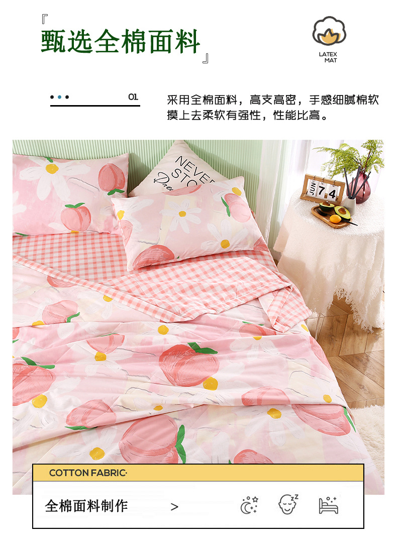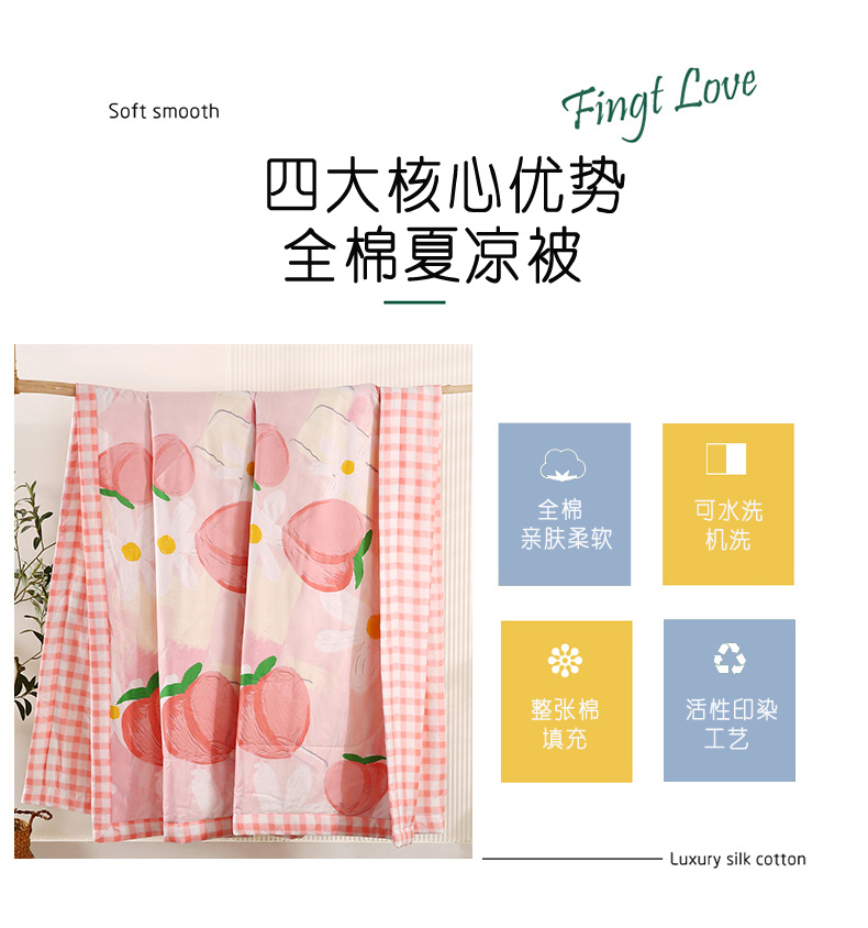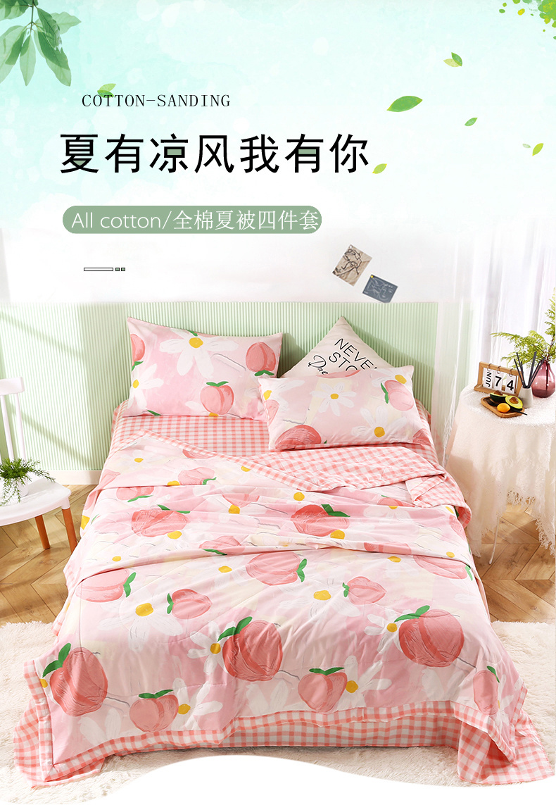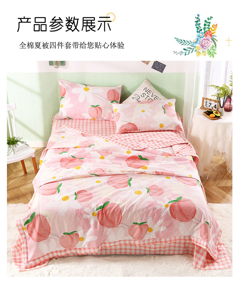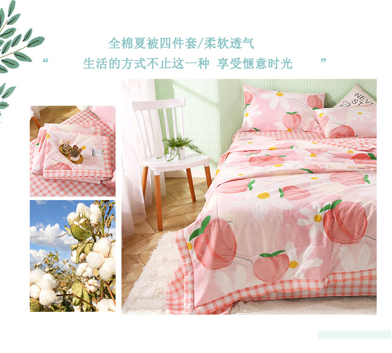 安博家纺2026全棉13372纯棉夏凉被四件套空调被夏凉被桃气夭夭 投诉