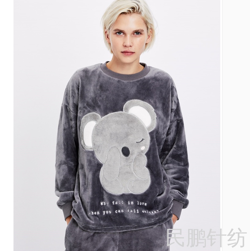 秋冬加厚睡衣套装胸前小熊绣花法兰绒家居服睡袍女欧美大码暖暖裤 投诉