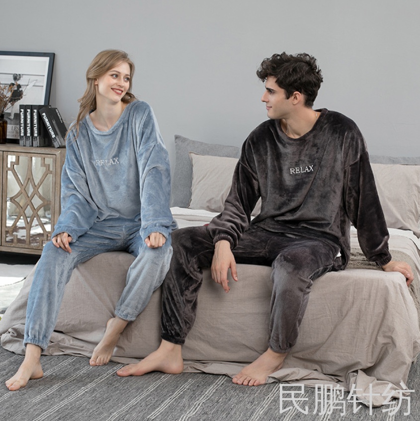 民鹏秋冬季情侣加厚睡衣女珊瑚绒睡袍欧美均码暖暖睡衣家居服简约