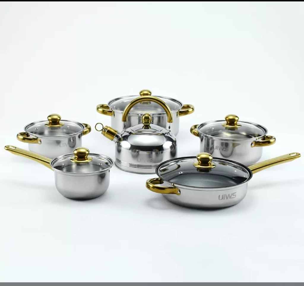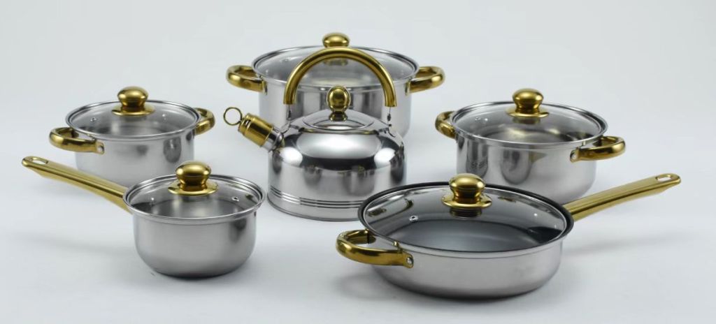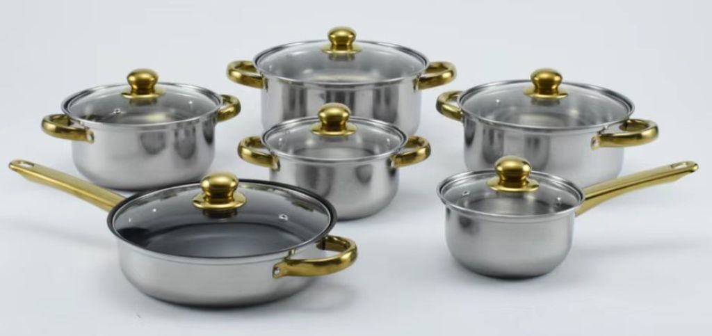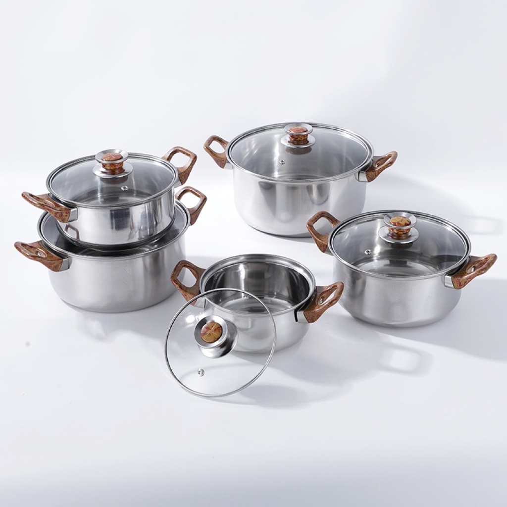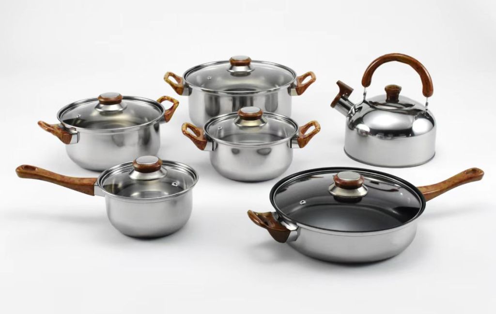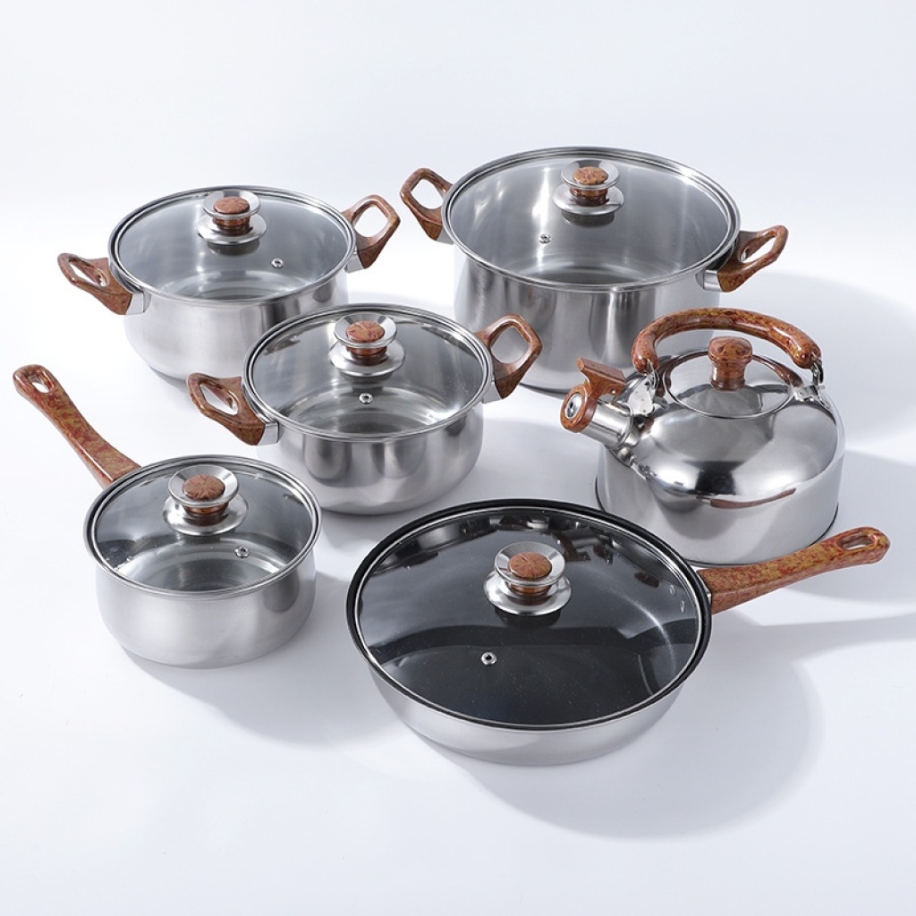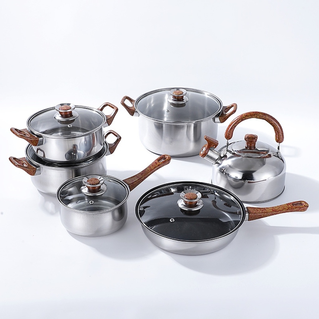 五金不锈钢套锅带水壶酒店厨房烹饪锅具12件套锅非洲中东南亚热卖