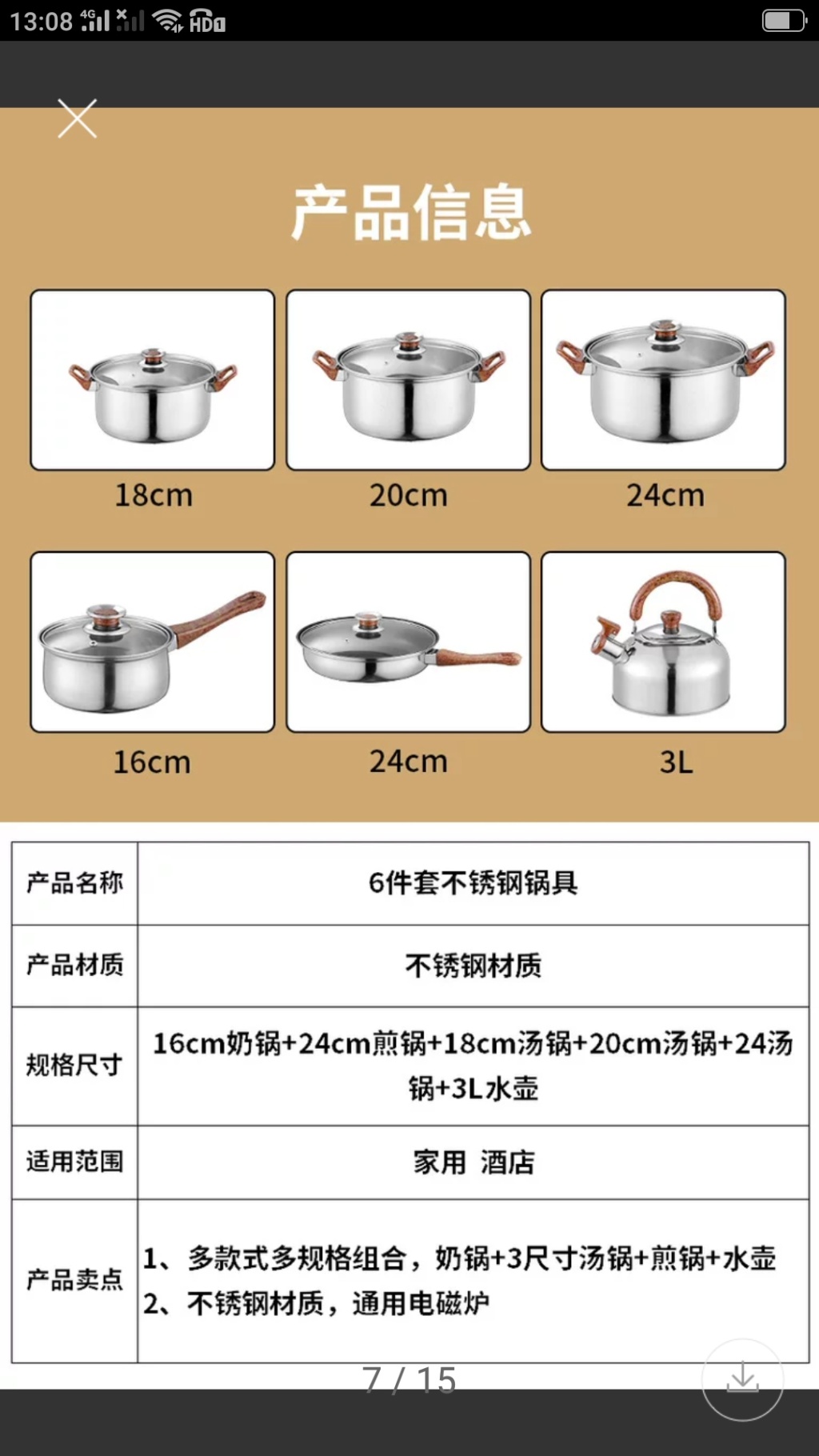 五金不锈钢套锅带水壶酒店厨房烹饪锅具12件套锅非洲中东南亚热卖 投诉
