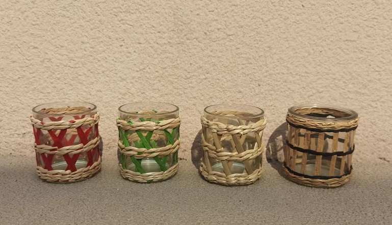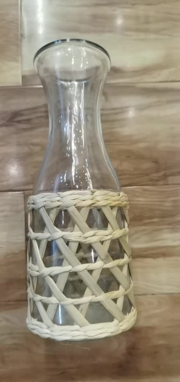 编织玻璃编织花瓶草编瓶子草编玻璃杯子