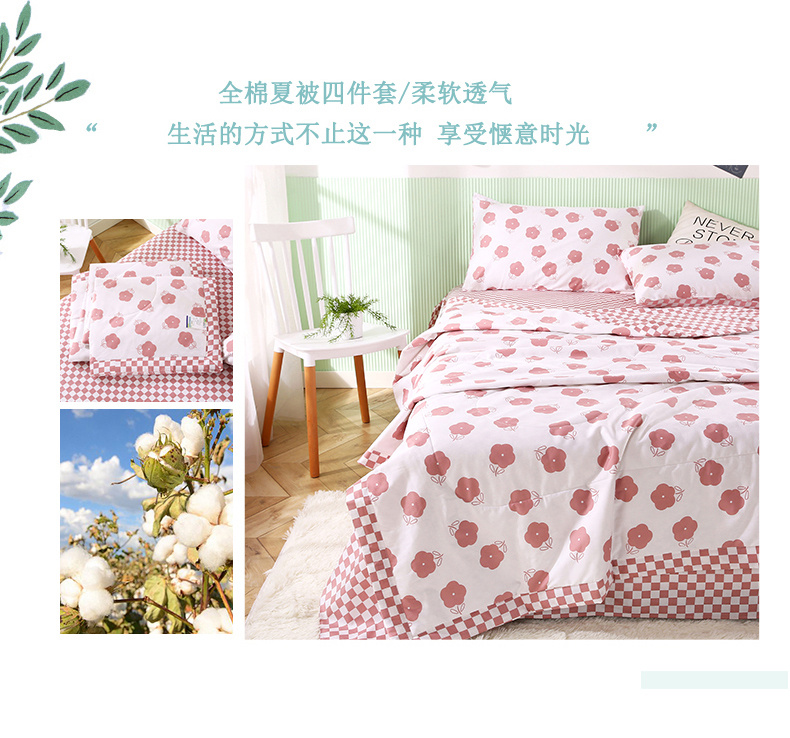 安博家纺2026全棉13372纯棉夏凉被四件套空调被夏凉被棋盘小花粉 投诉