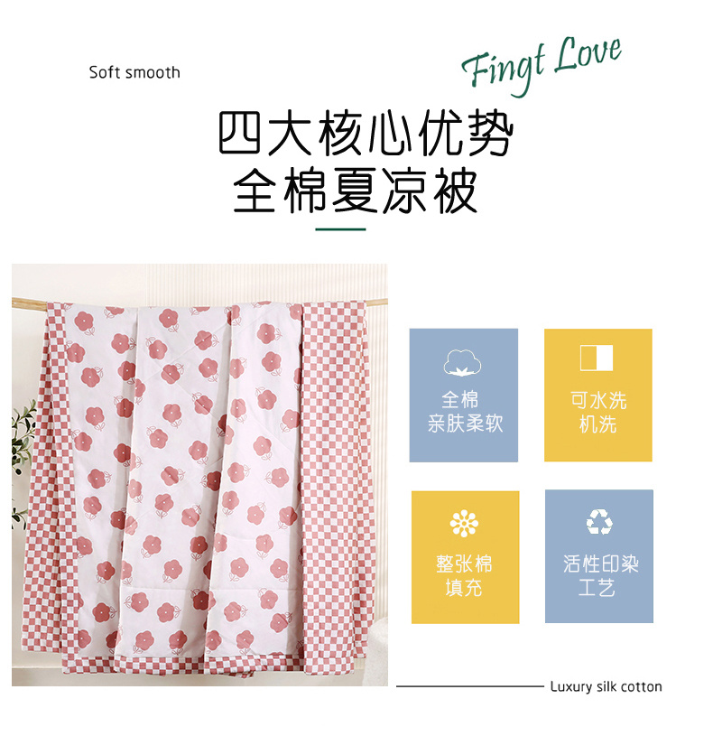 安博家纺2026全棉13372纯棉夏凉被四件套空调被夏凉被棋盘小花粉