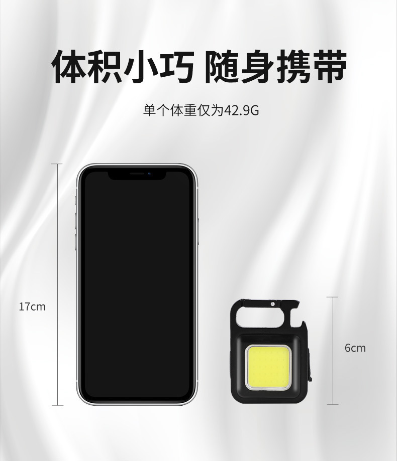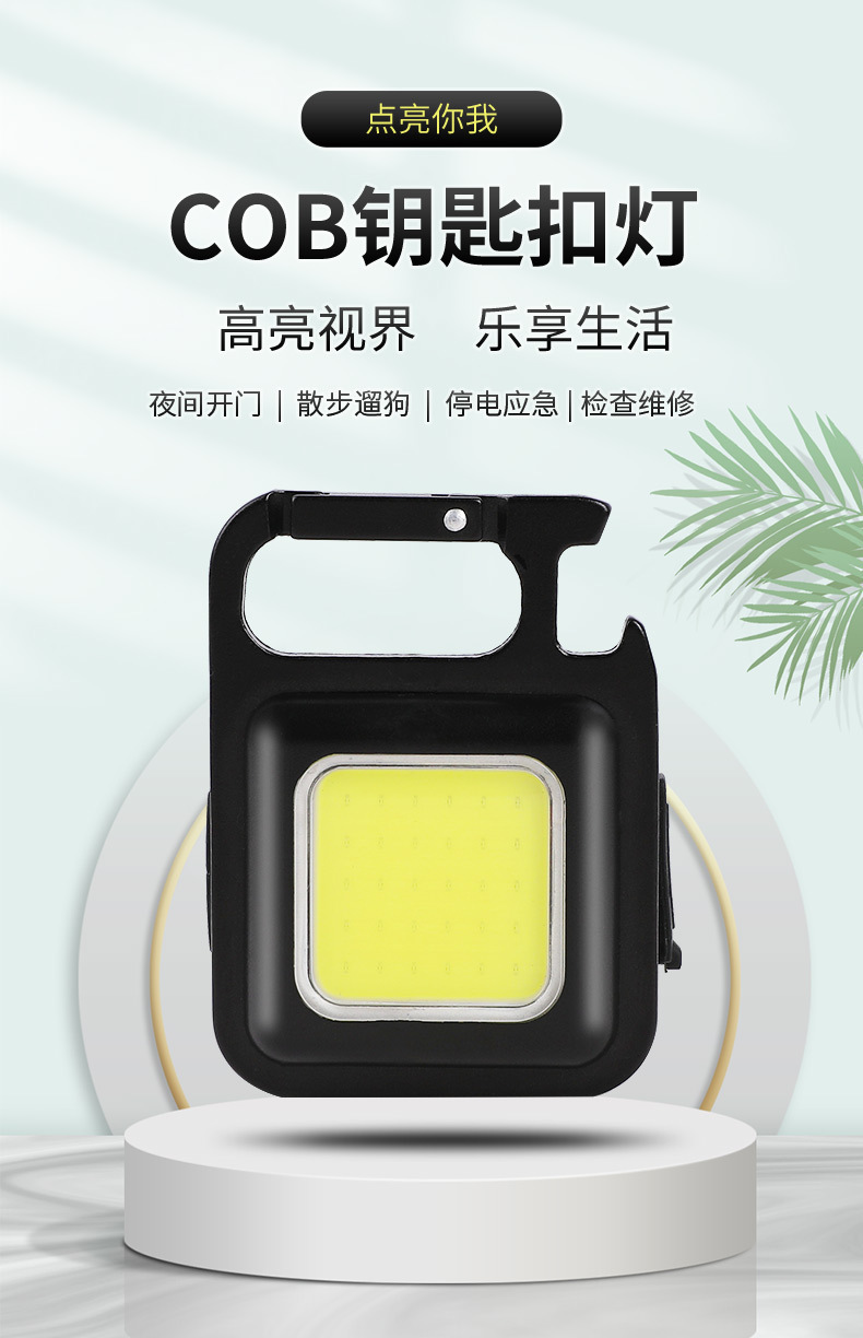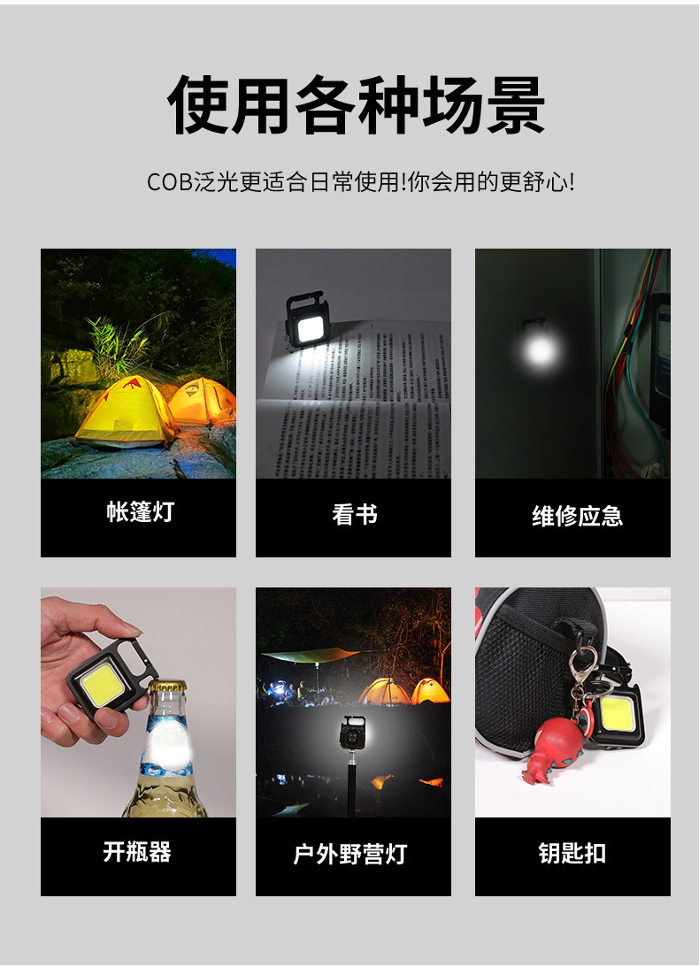 多功能充电应急灯钥匙扣便携式工作灯 高亮COB检修灯户外露营灯 投诉