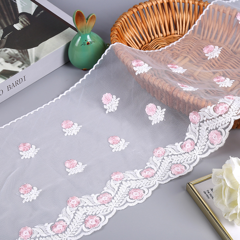 新款定型纱刺绣花边窗帘家纺布艺沙发沙发垫箱包服装裙摆小花朵
