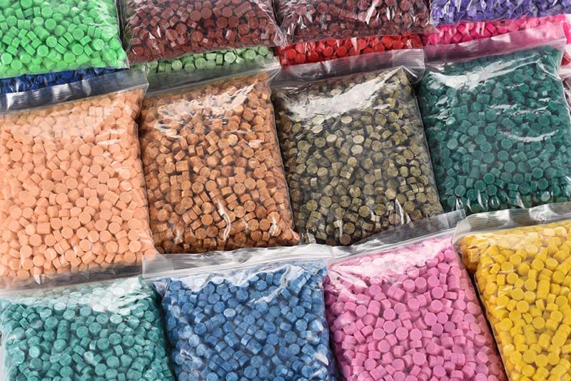 一般三粒可以印一个(以25MM规格火漆印为标准)