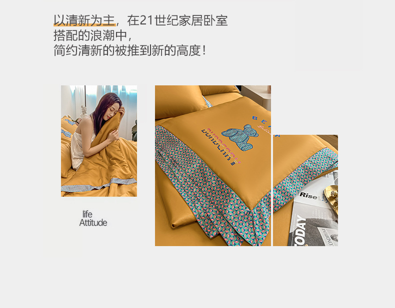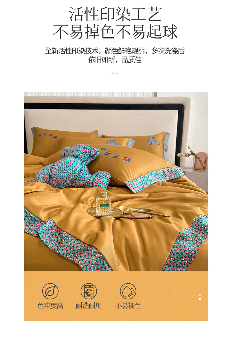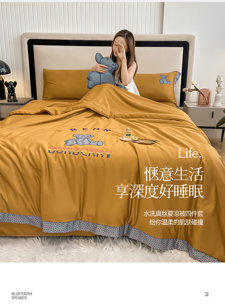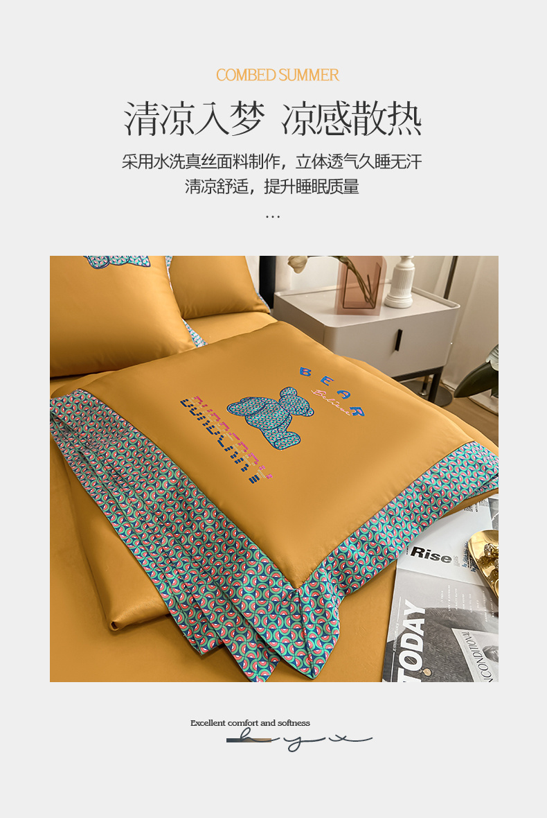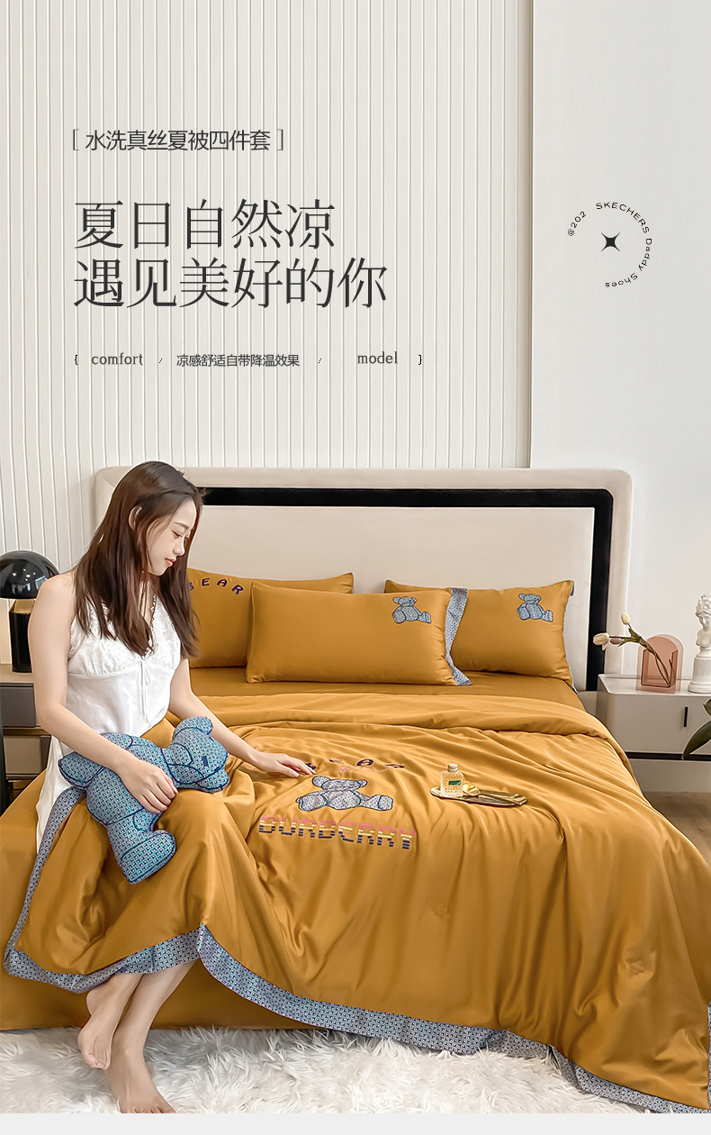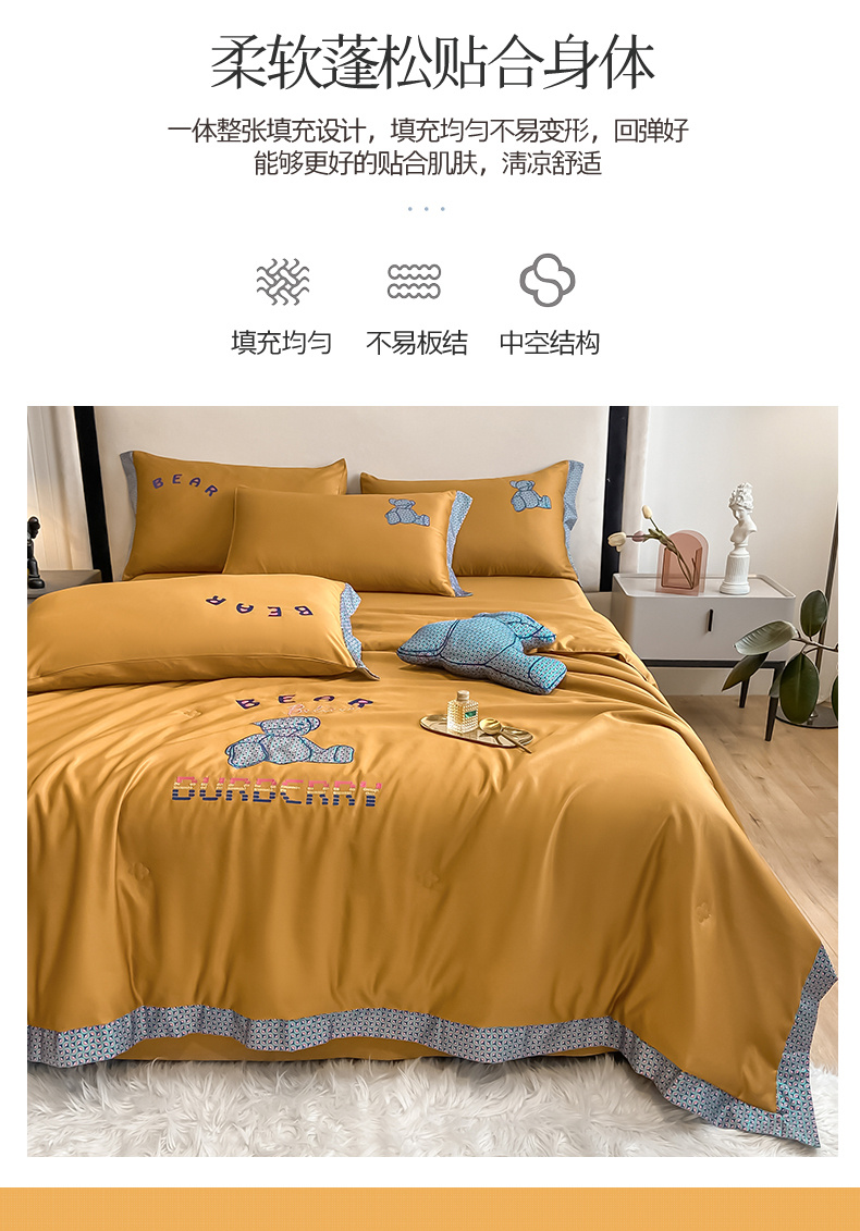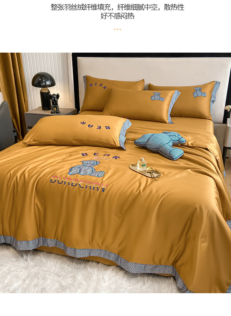 2026新款水洗天丝绣花夏被四件套巴黎熊礼盒装送礼品盒高档姜黄熊 投诉