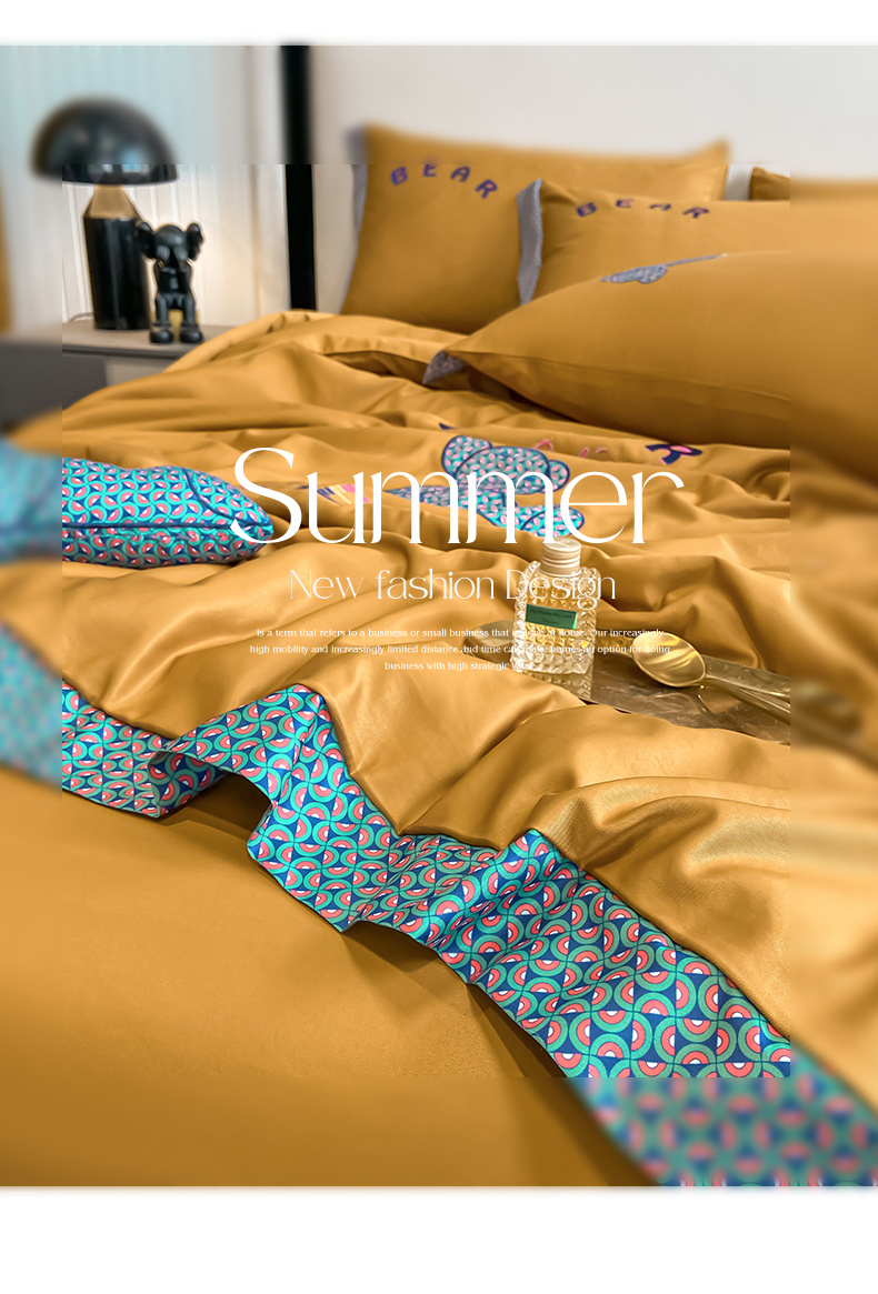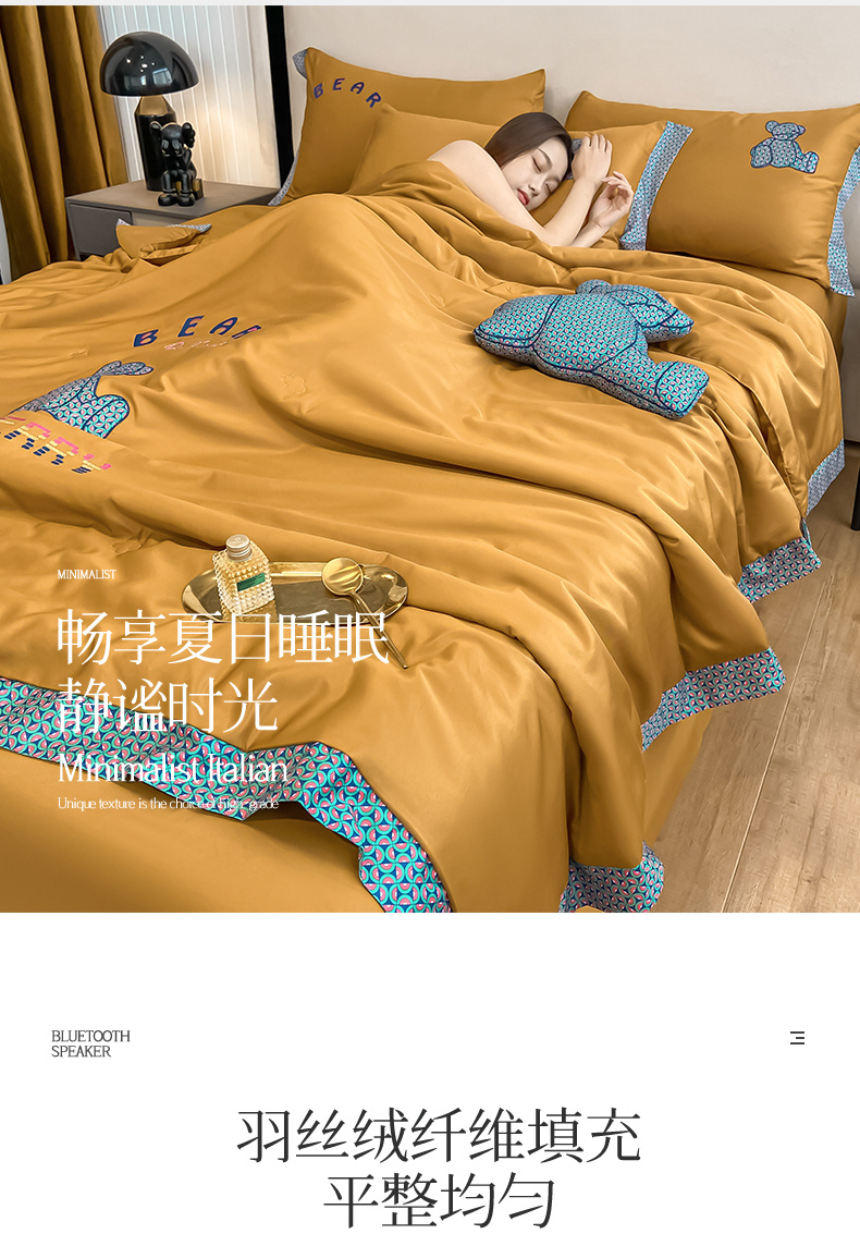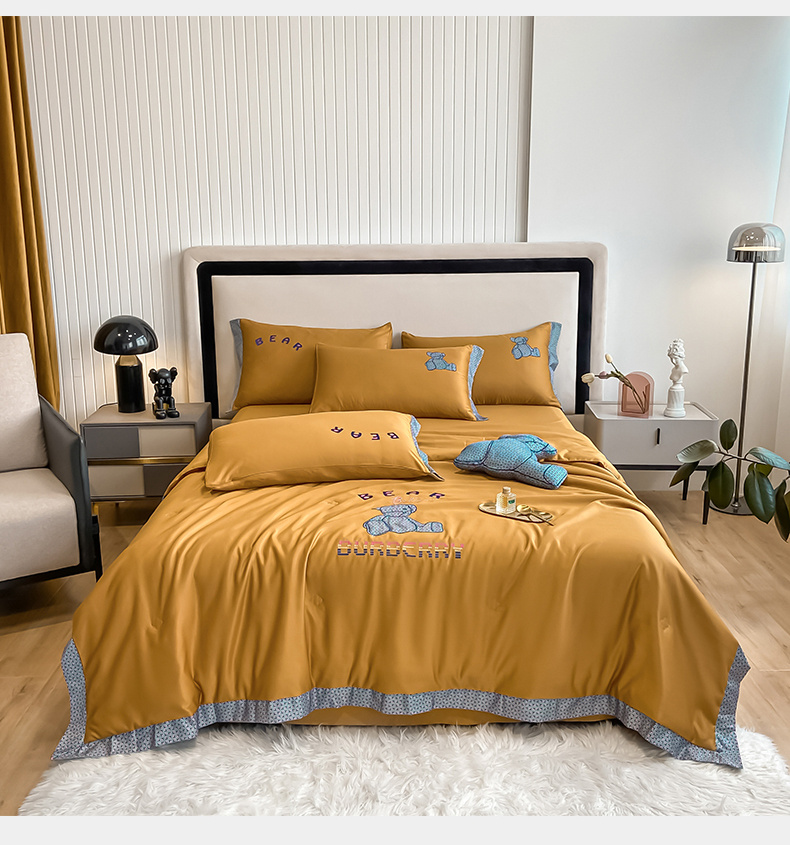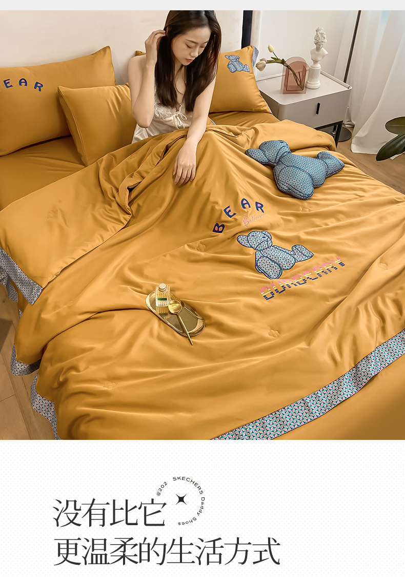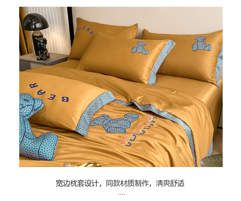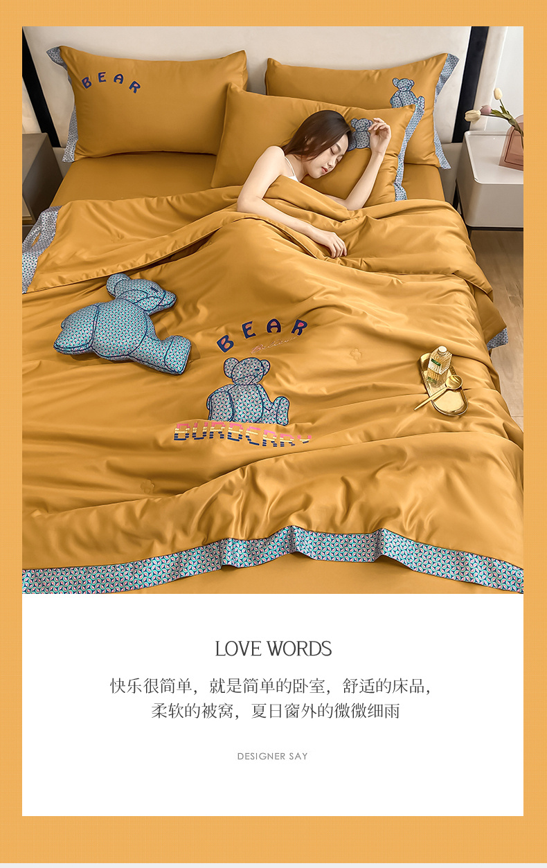 2026新款水洗天丝绣花夏被四件套巴黎熊礼盒装送礼品盒高档姜黄熊