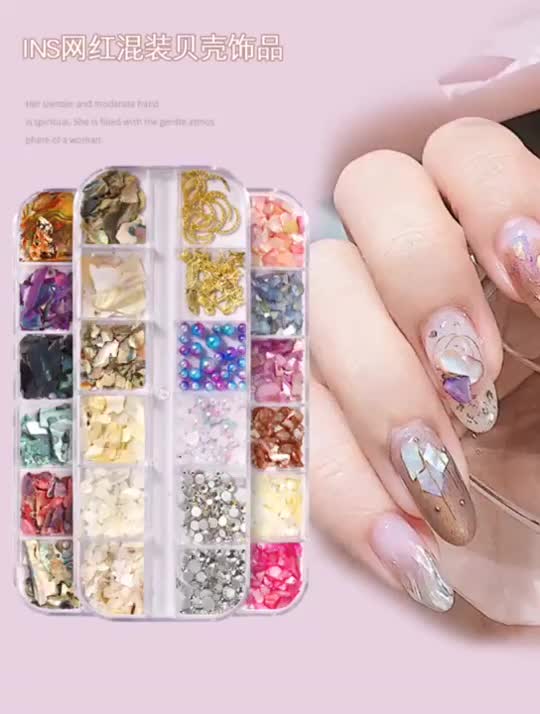 日式joujou同款网红美甲天然贝壳片鲍鱼厚款高亮泽美甲饰品套装