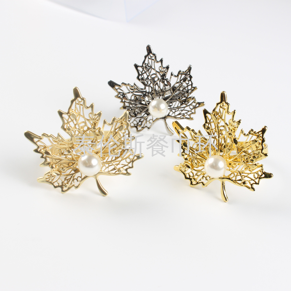 厂家直销新款枫叶珍珠餐巾环餐巾圈餐巾扣