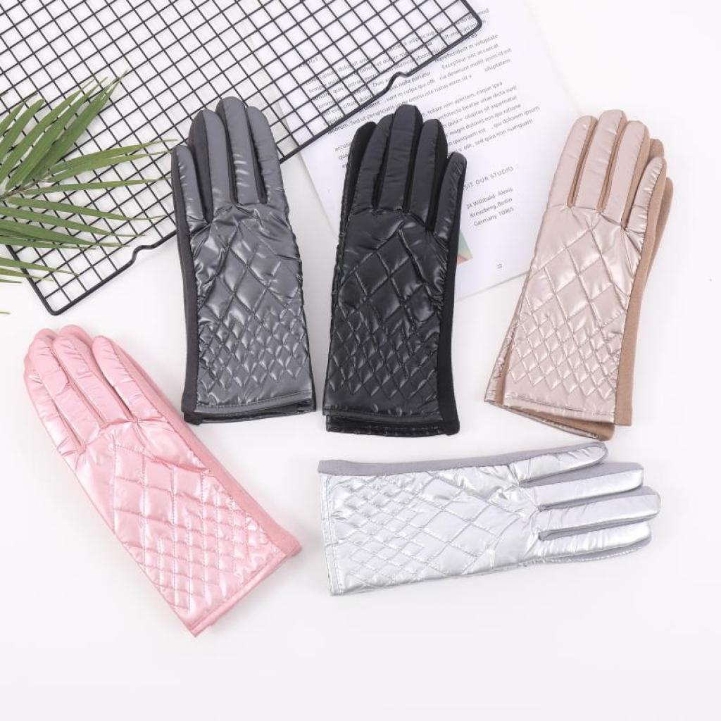 免洗羽绒布女式手套手背方块,左右手大拇指食指绣本色梅花触屏