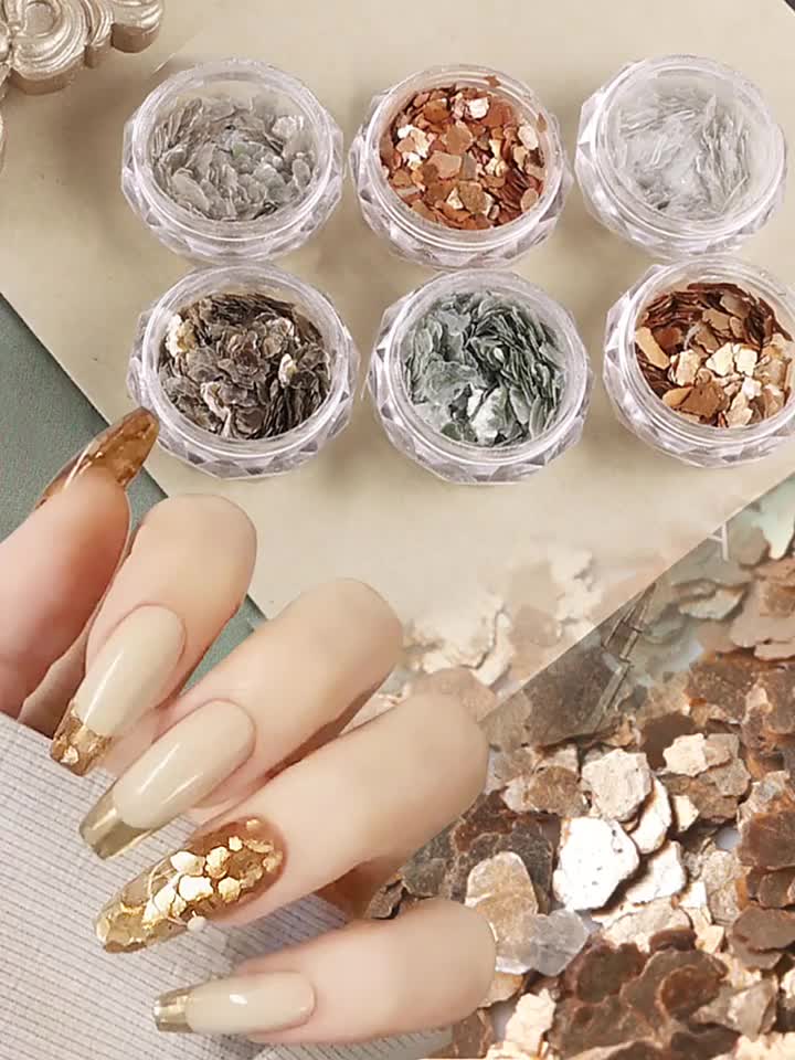 网红云母片美甲金属高亮泽矿物铜金片薄碎片不规则云母片指甲套装