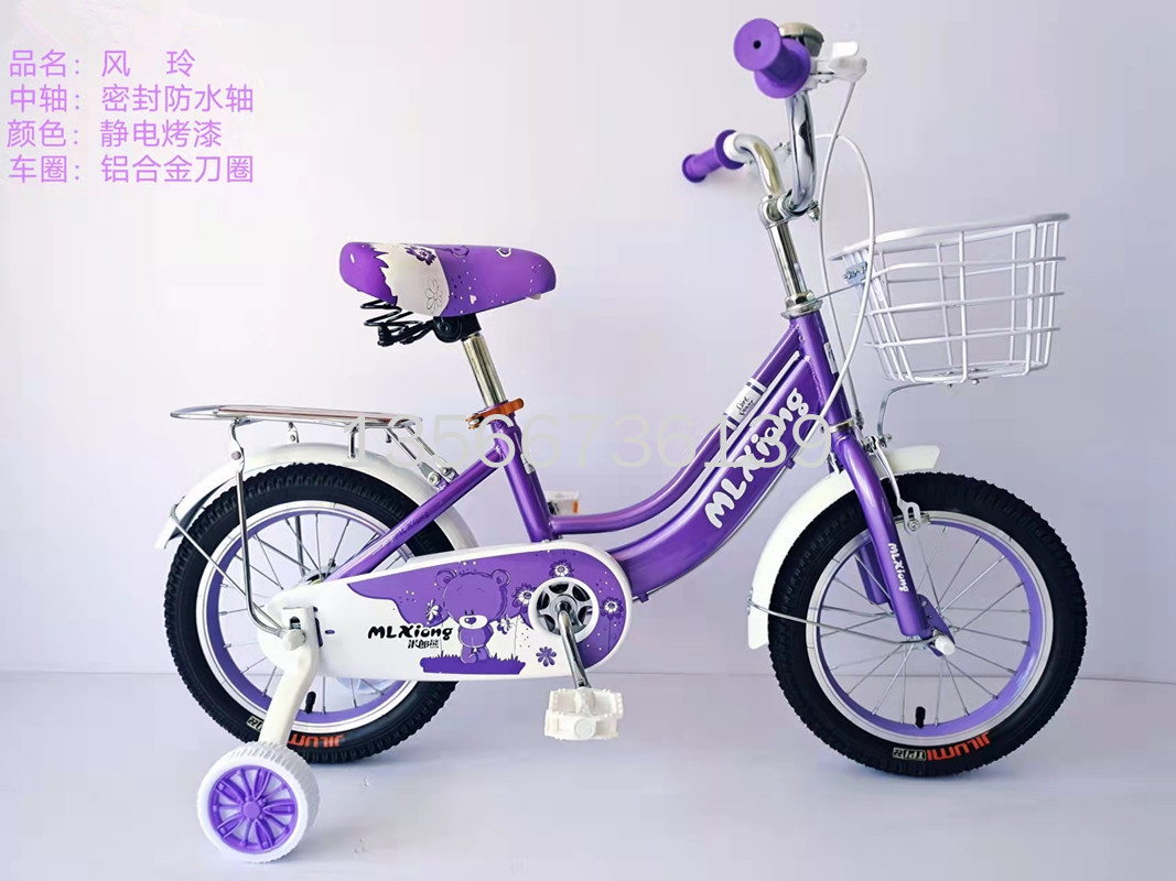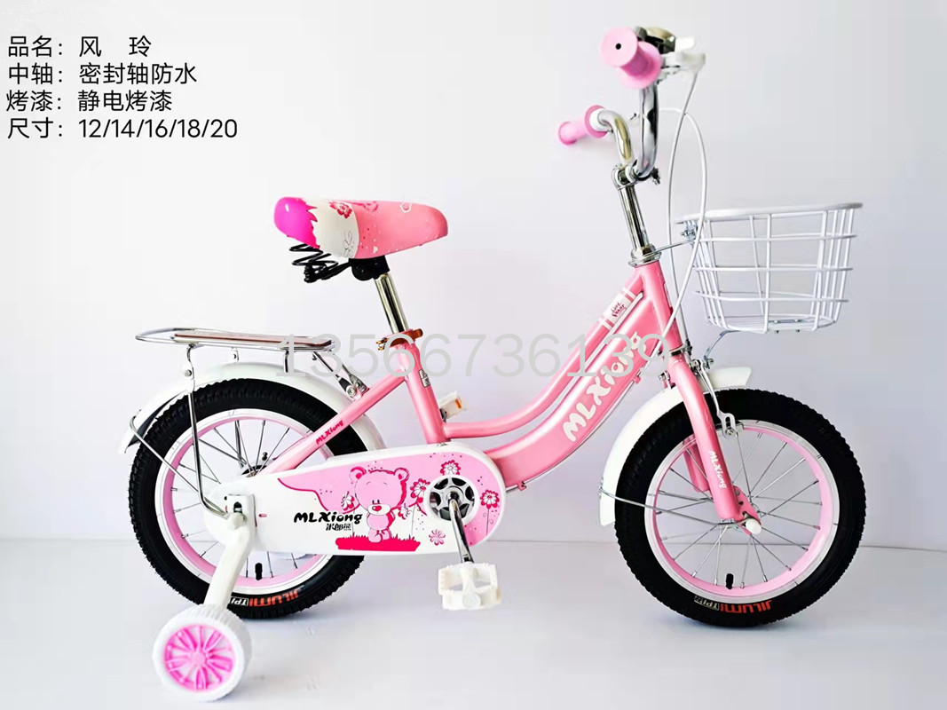 2022新款儿童自行车风铃轻便带车筐后座女童车12/14/16/18/20寸