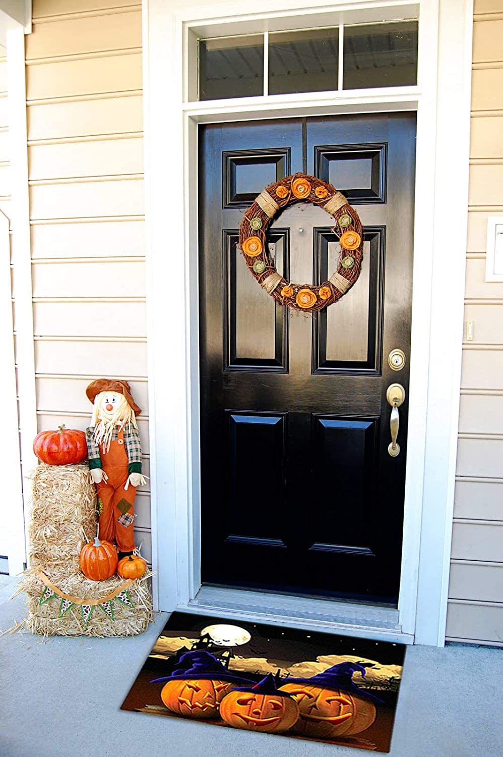有趣的万圣节女巫帽南瓜门欢迎垫可水洗室内外入口地毯家居装饰