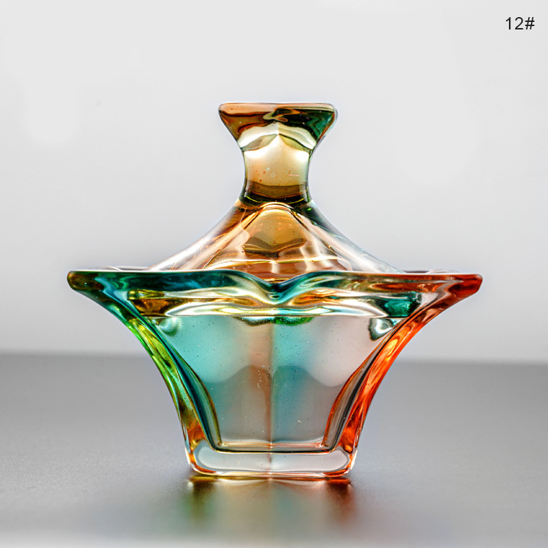 美甲八角杯 美甲玻璃杯水晶杯带盖液体杯美甲杯子洗笔杯美甲工具
