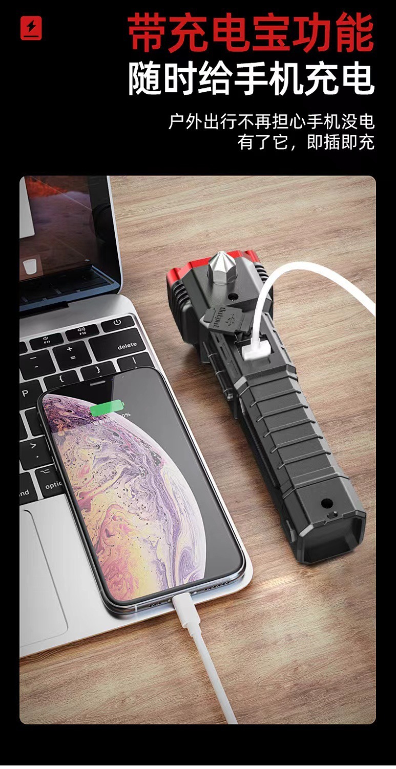 多功能汽车破窗锤救生安全锤强光手电筒车载COB应急消防逃生工具