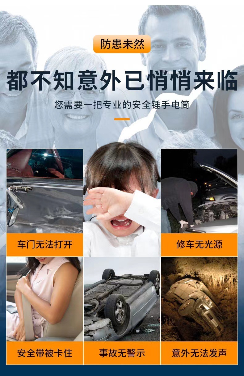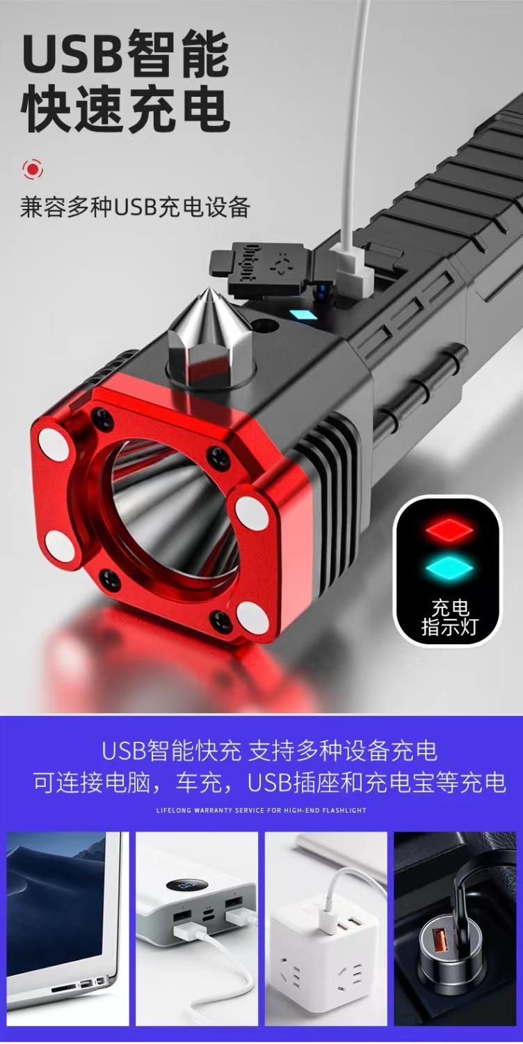 多功能汽车破窗锤救生安全锤强光手电筒车载COB应急消防逃生工具 投诉