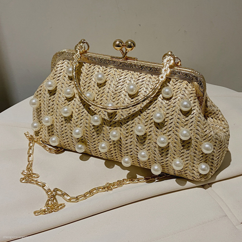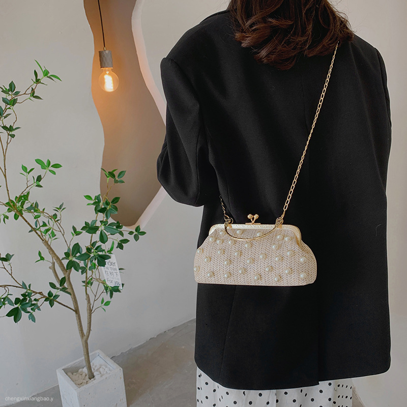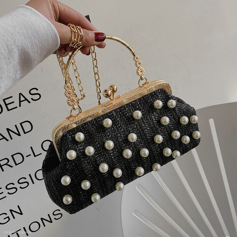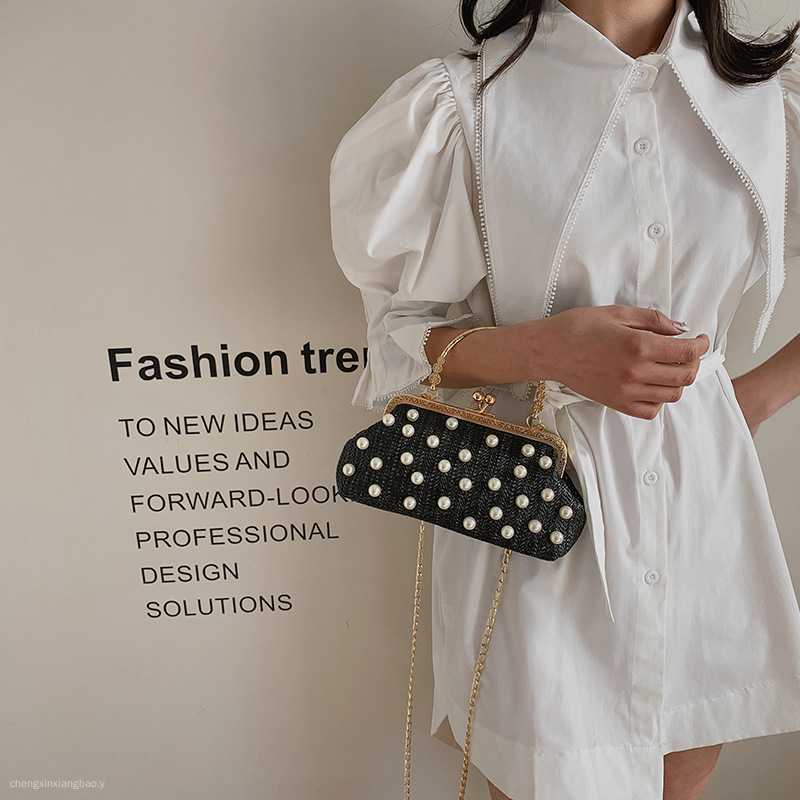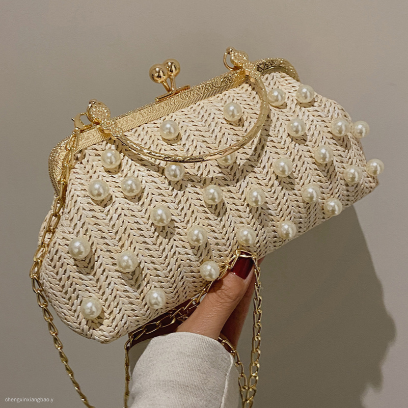 包包女潮时尚编织珍珠女包百搭单肩斜挎包手提草编珍珠夹子包 English | 投诉