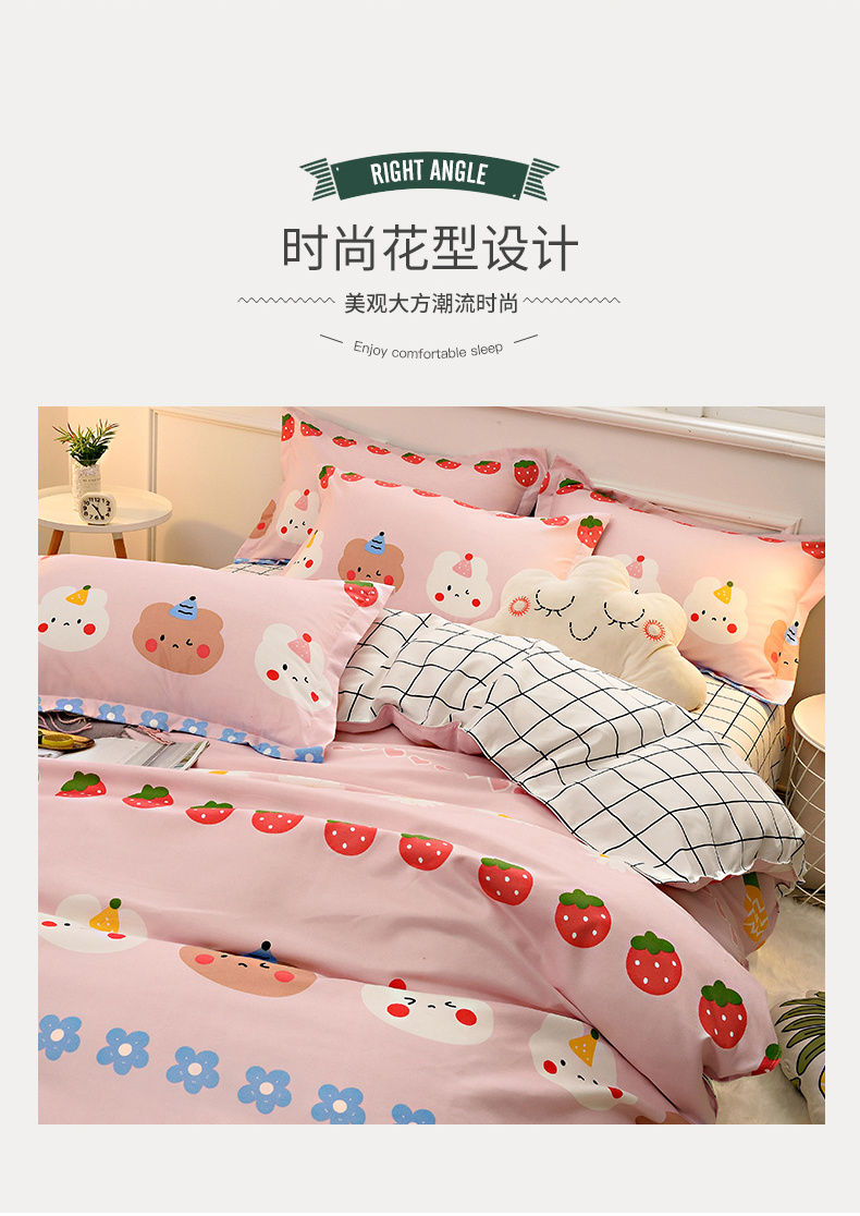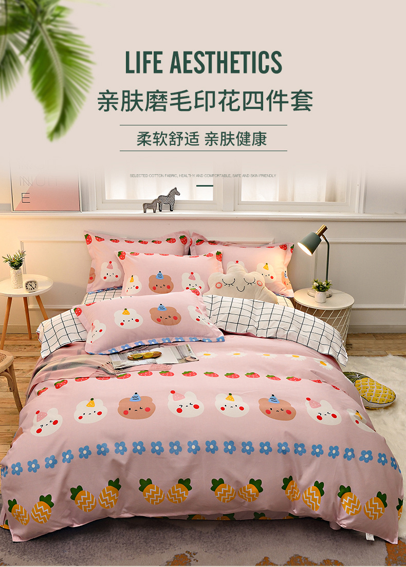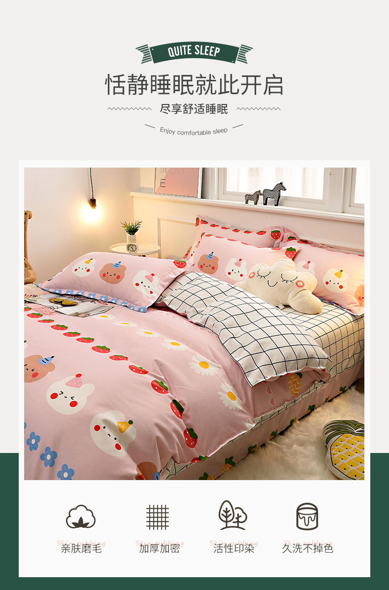 2026新款斜纹加厚磨毛四件套铂金棉高克重植物羊绒三件套小熊朵朵