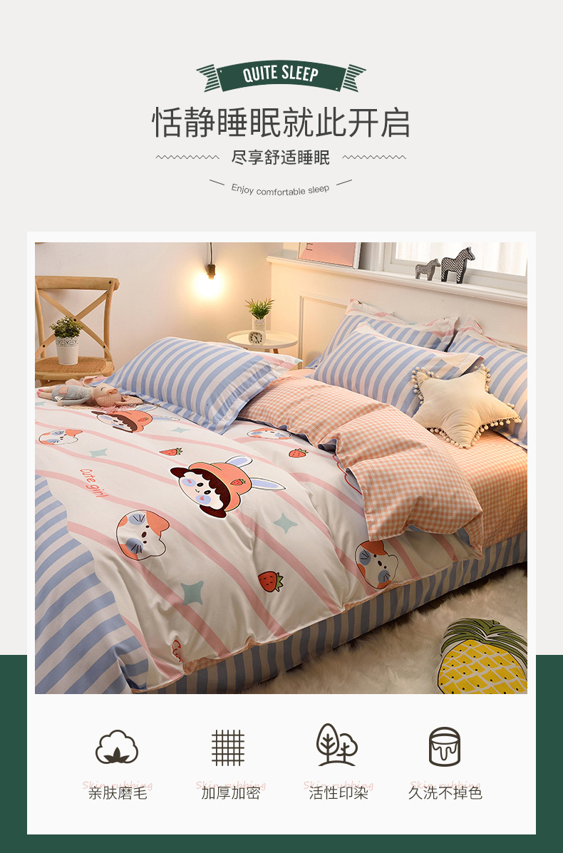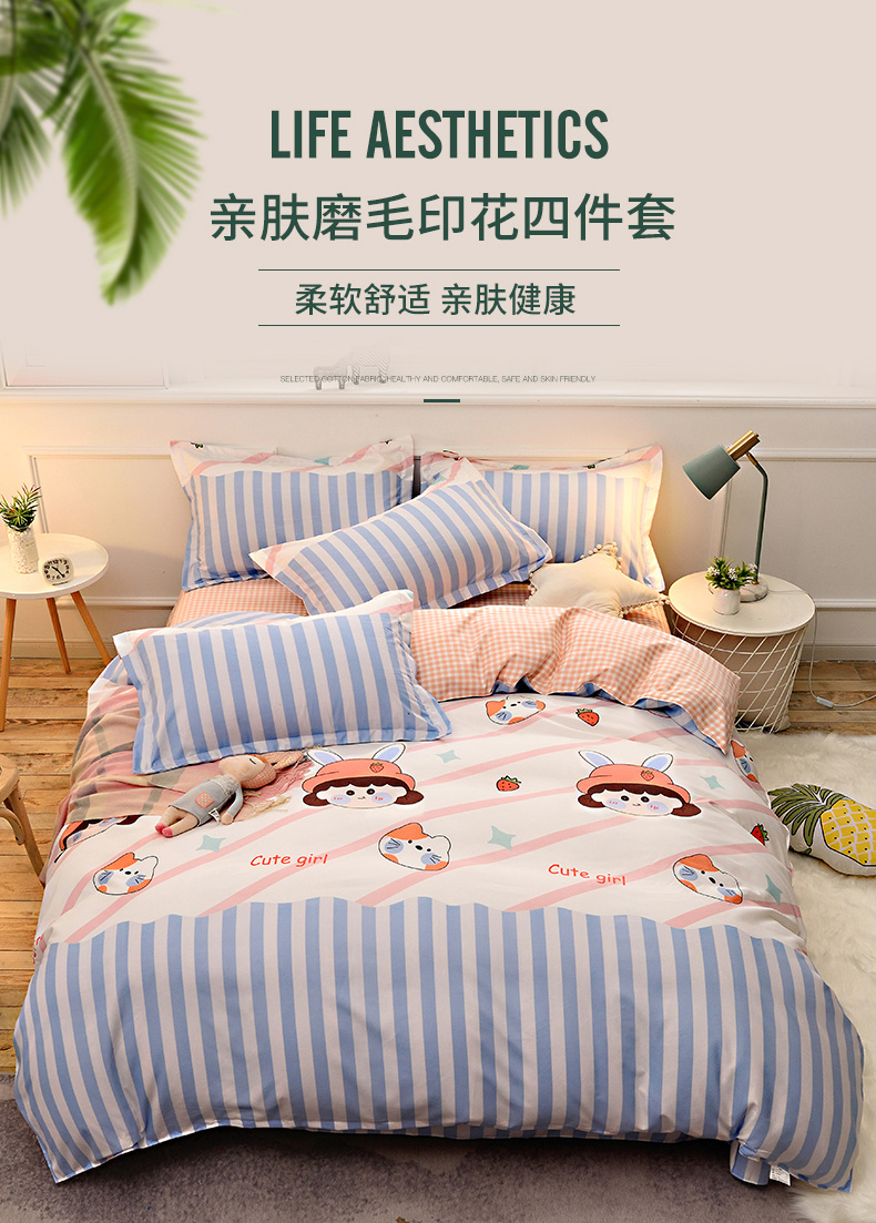 2026新款斜纹加厚磨毛四件套铂金棉高克重植物羊绒三件套氧气女蓝 投诉
