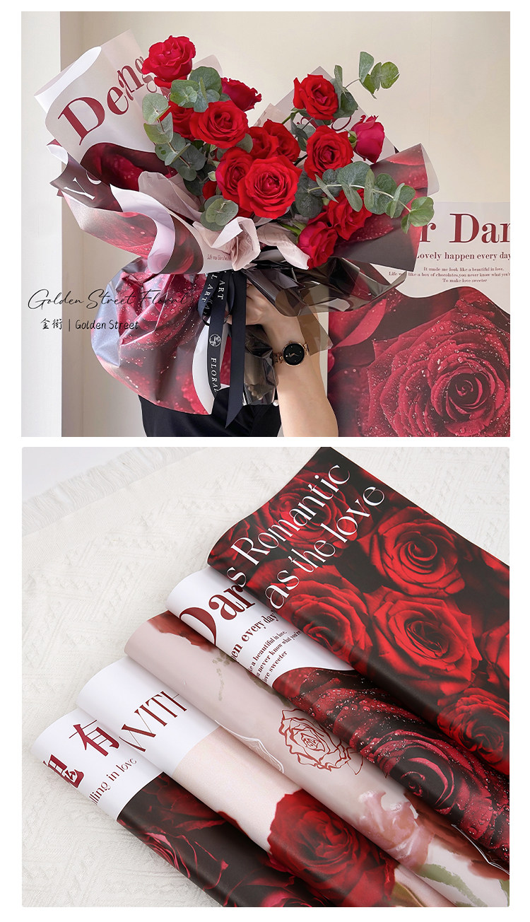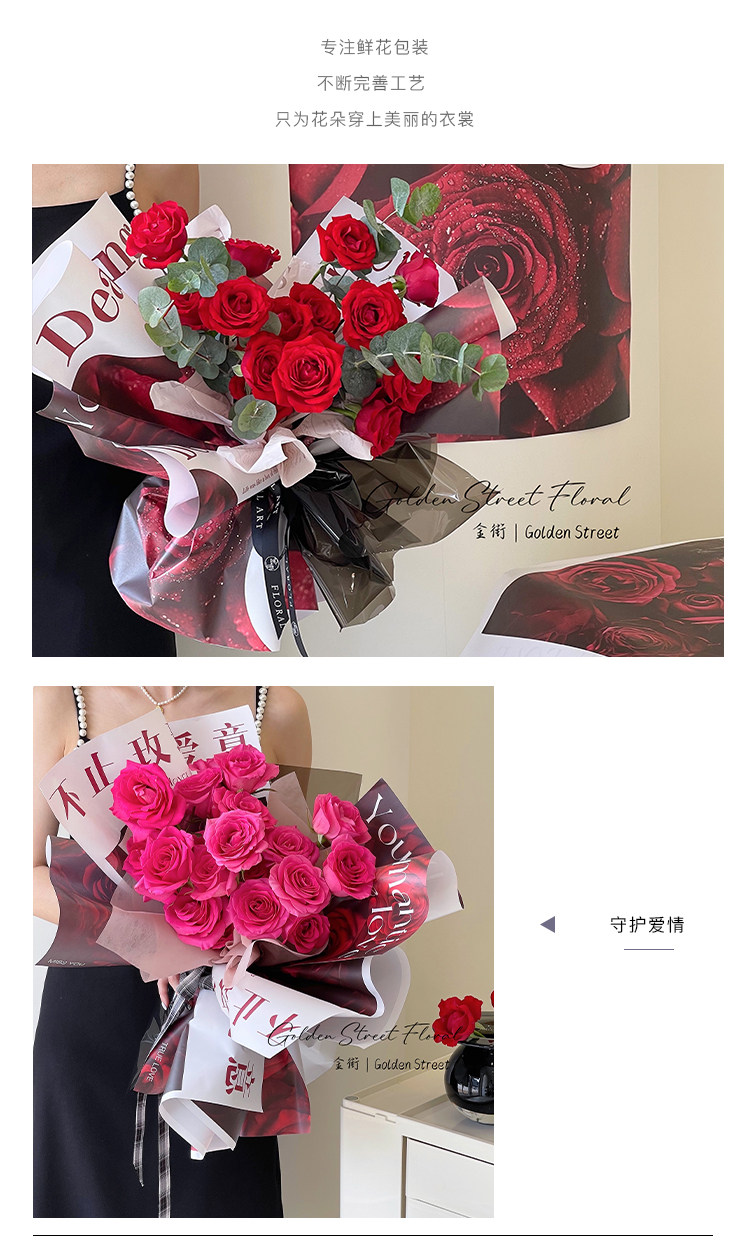 花衣裳 七夕新款守护爱情玫瑰包装纸防水欧雅鲜花花束资材礼品