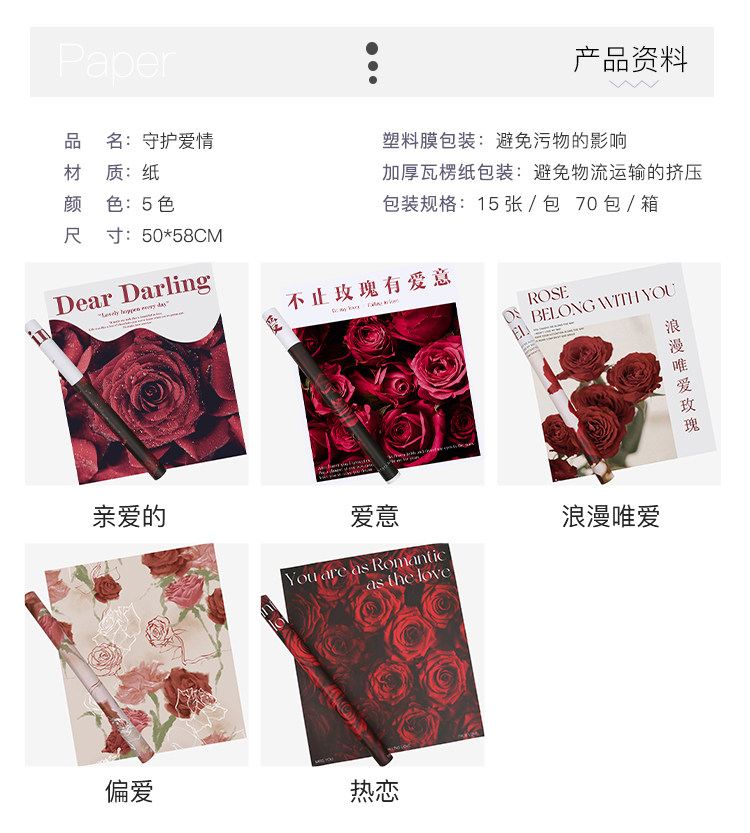 花衣裳 七夕新款守护爱情玫瑰包装纸防水欧雅鲜花花束资材礼品 投诉