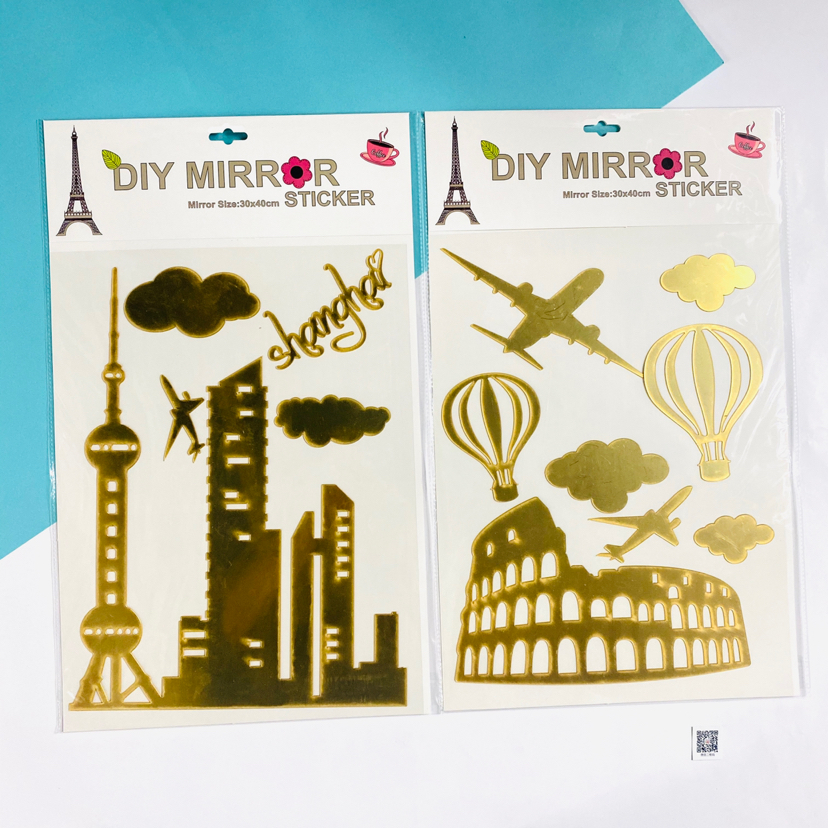 菠萝蔬菜水果建筑飞机热气球铁塔系列PP镜子家居装饰贴纸