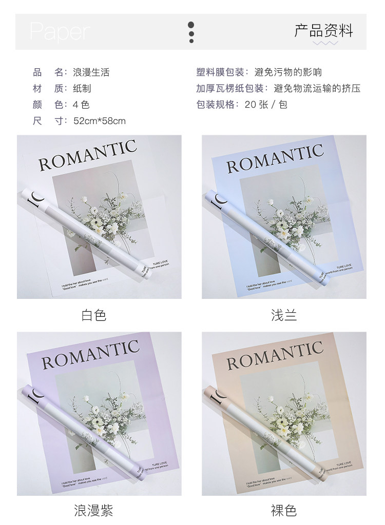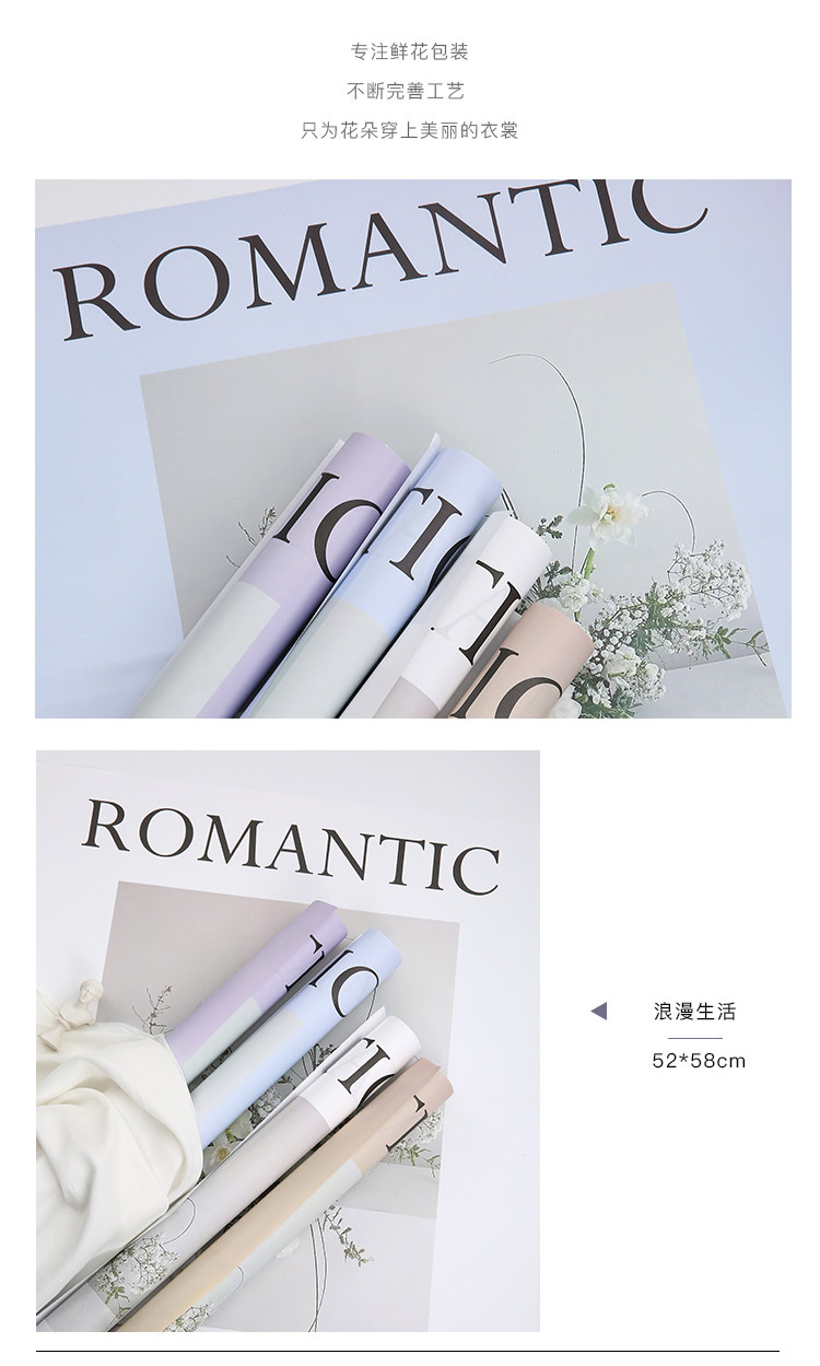 花衣裳 七夕新款英文鲜花浪漫生活花束包装纸花店礼品包装资材 投诉