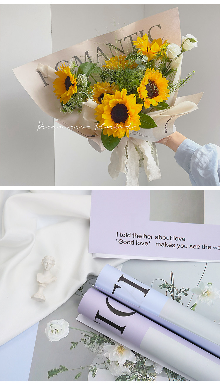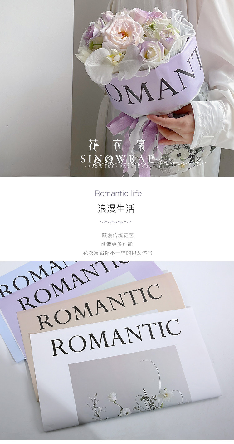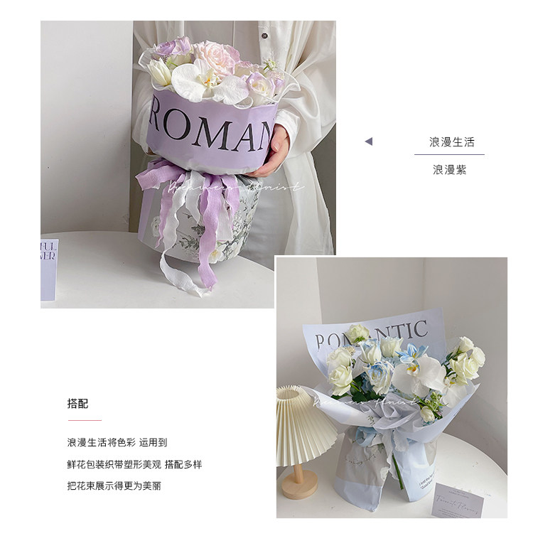 花衣裳 七夕新款英文鲜花浪漫生活花束包装纸花店礼品包装资材