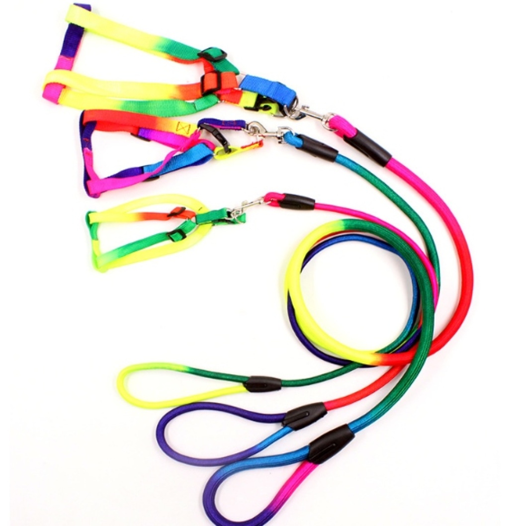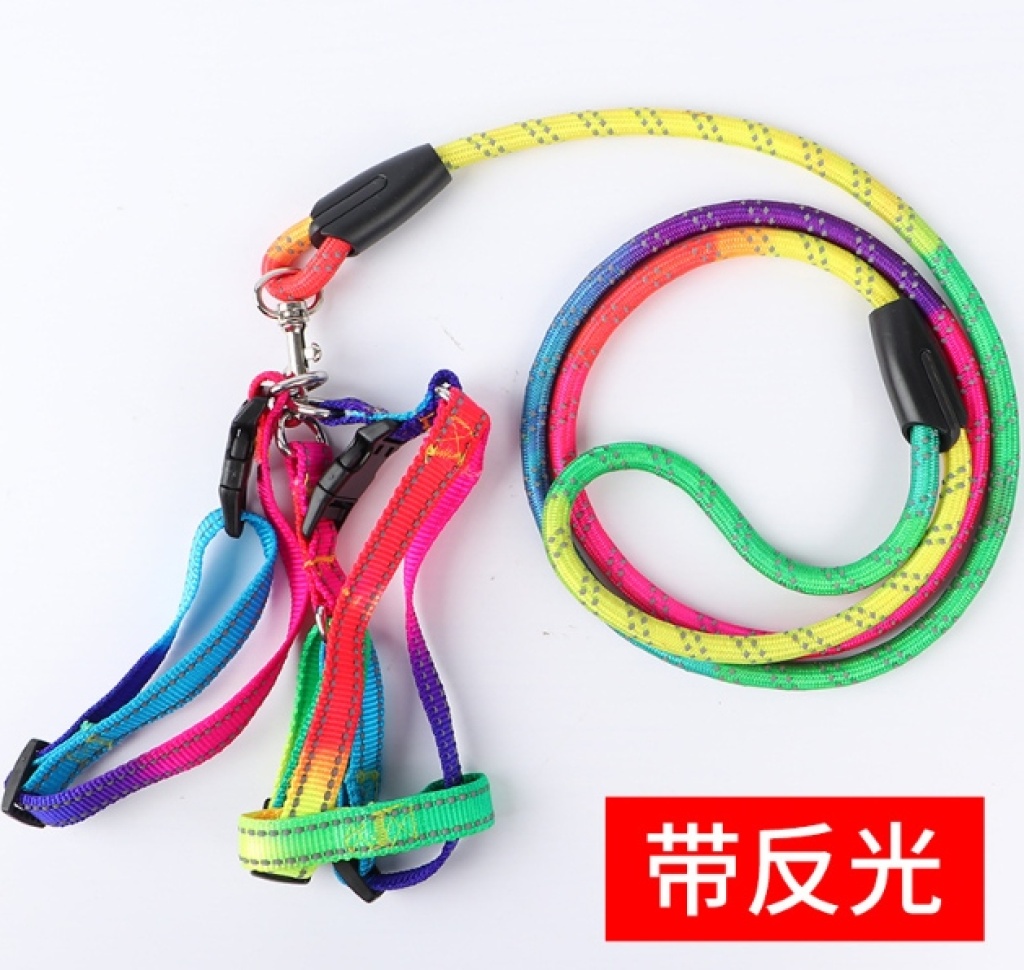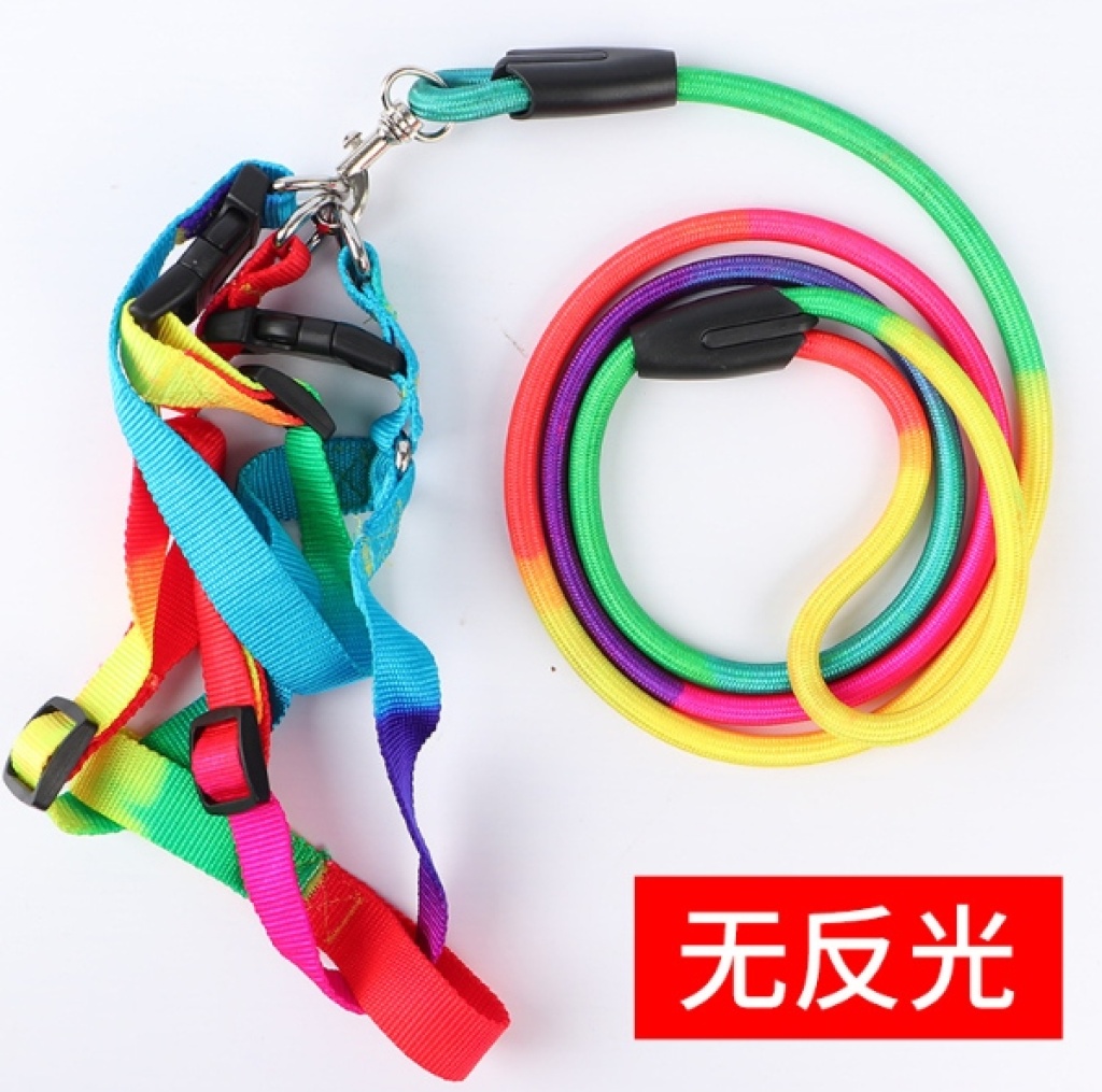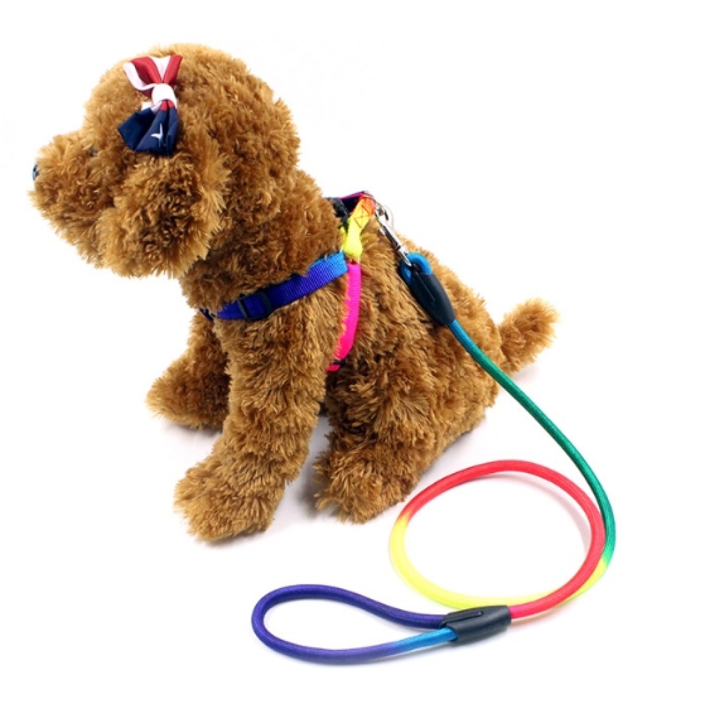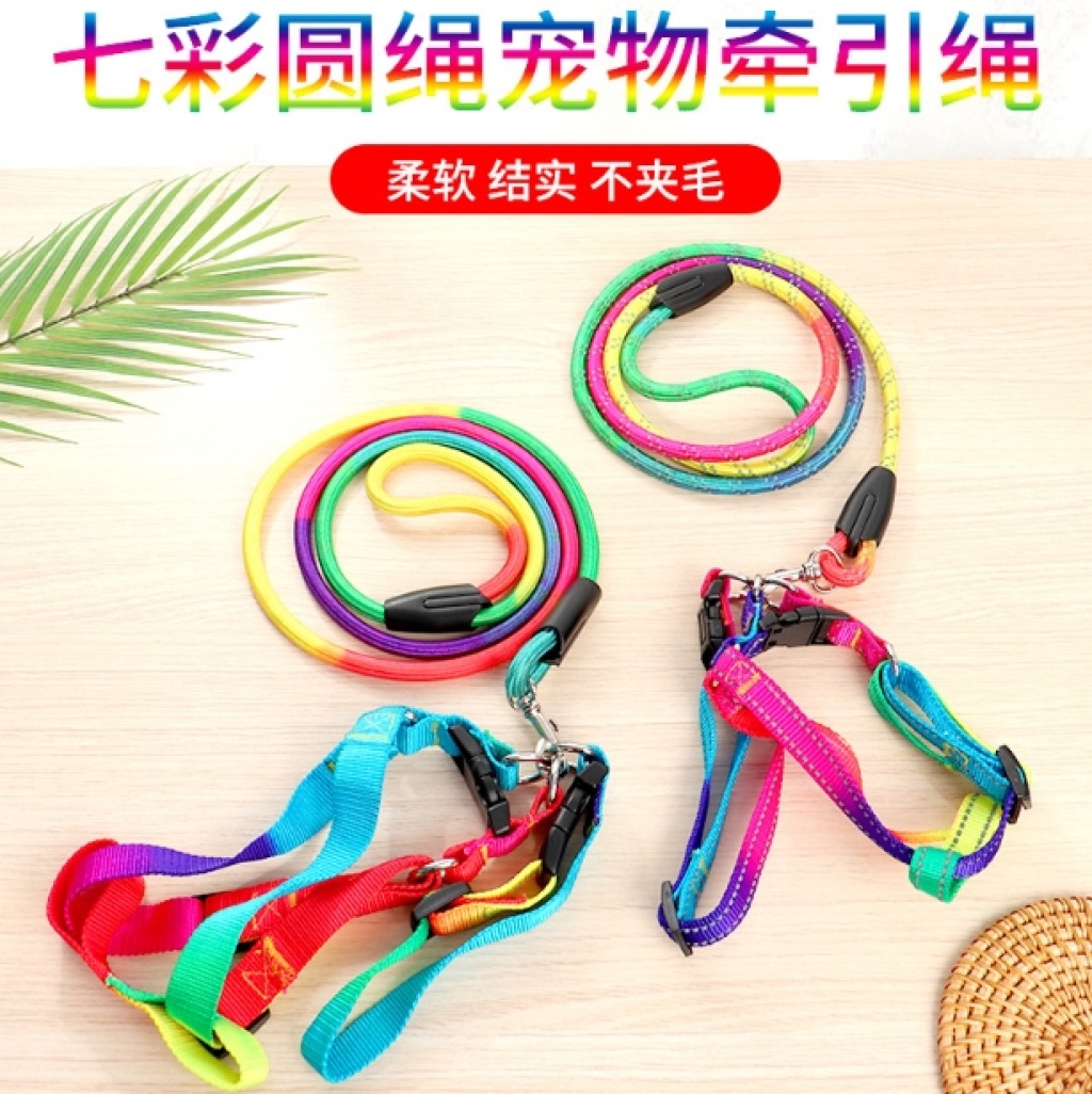 工厂宠物七彩圆绳牵引绳小型犬遛狗胸背带圆绳 投诉