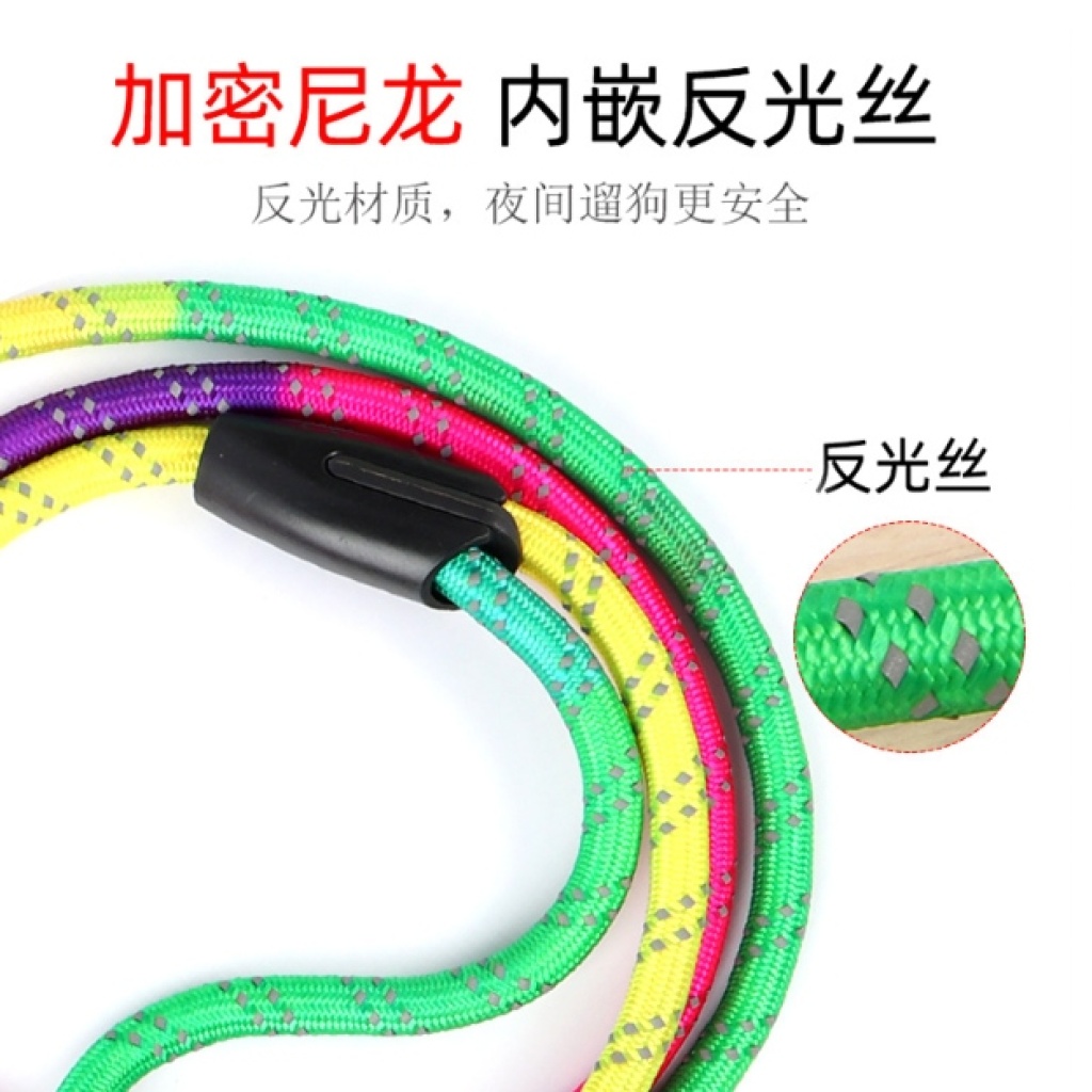宠物七彩圆绳牵引绳小型犬遛狗胸背带圆绳子小狗链 狗狗牵引绳 细节请联系:15372948358