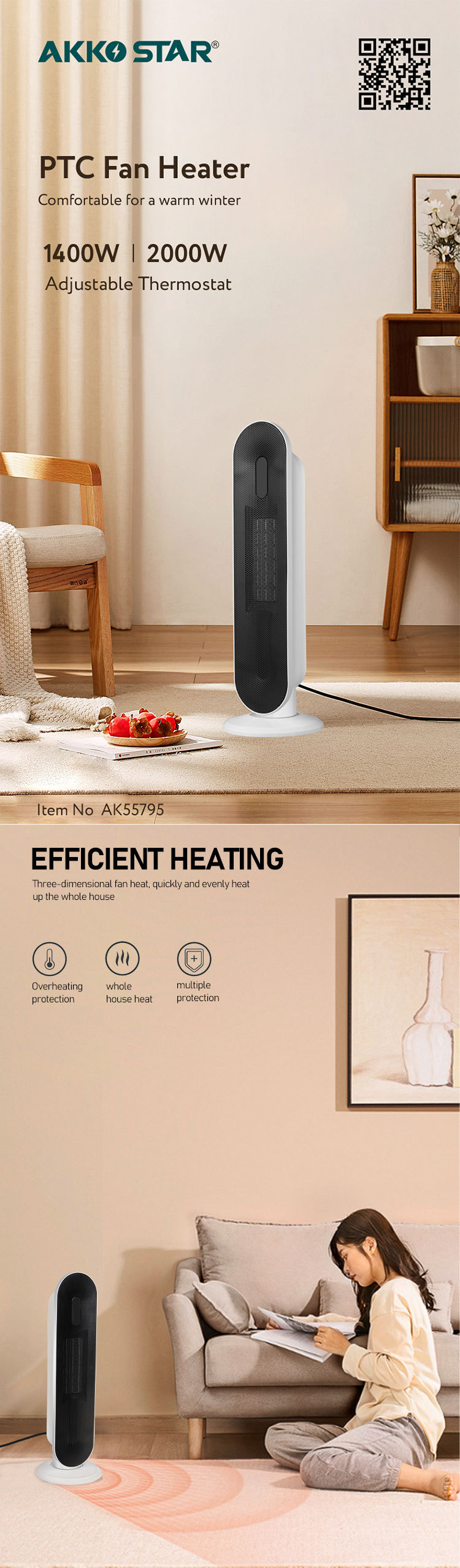 AKKOSTAR 1400W/2200W 快速加热 取暖器 家用型电暖气