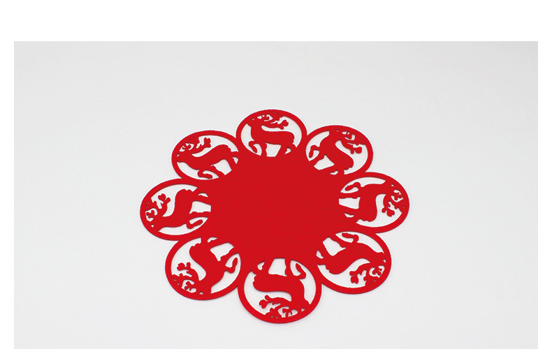 设计亮点: 无毒环保 包装规格: 单一包装 产品颜色: 红色 产品规格: 详见详情页 产品包装: 透明OPP袋 材质厚度: 2mm 产品材质: 无纺布 产品名称: 餐垫 杯垫 碗垫