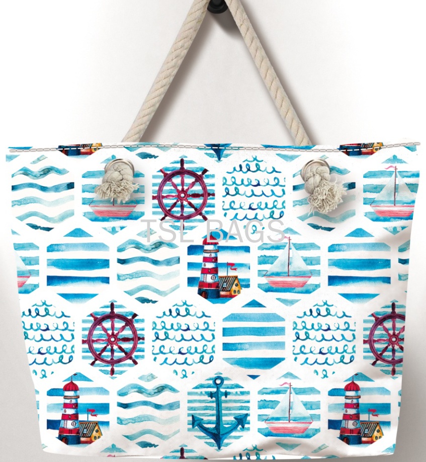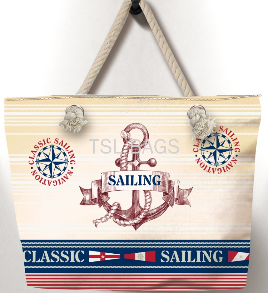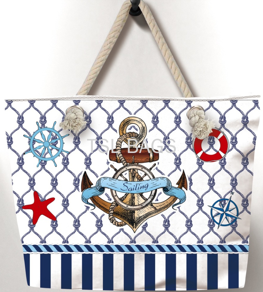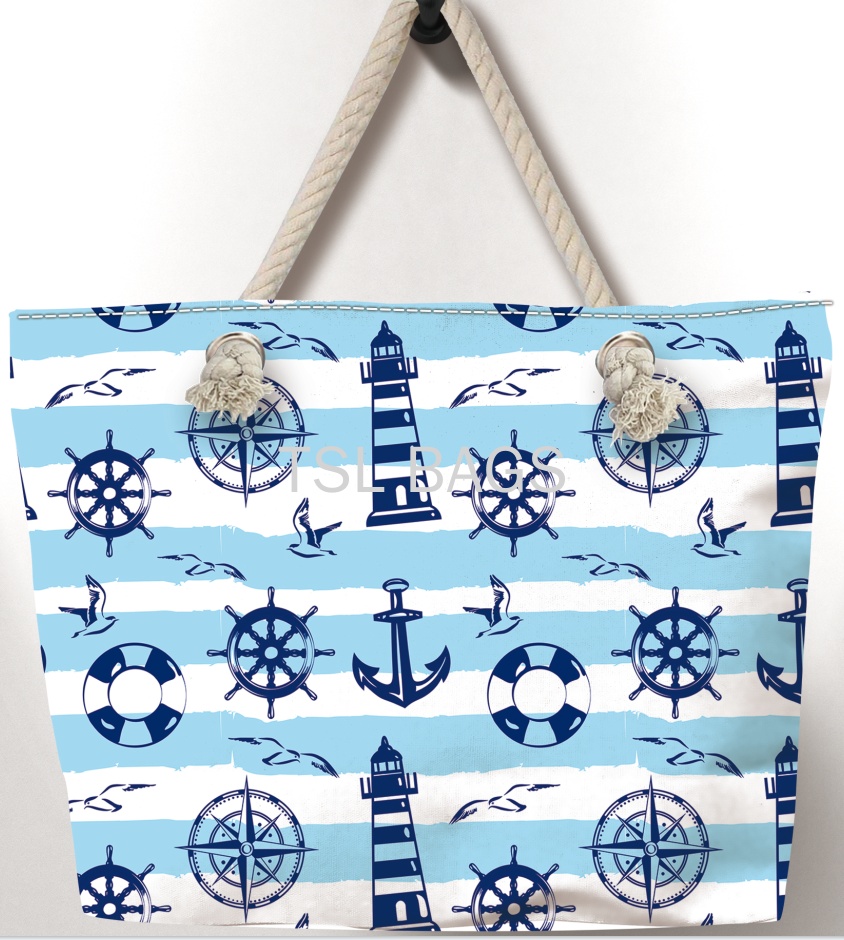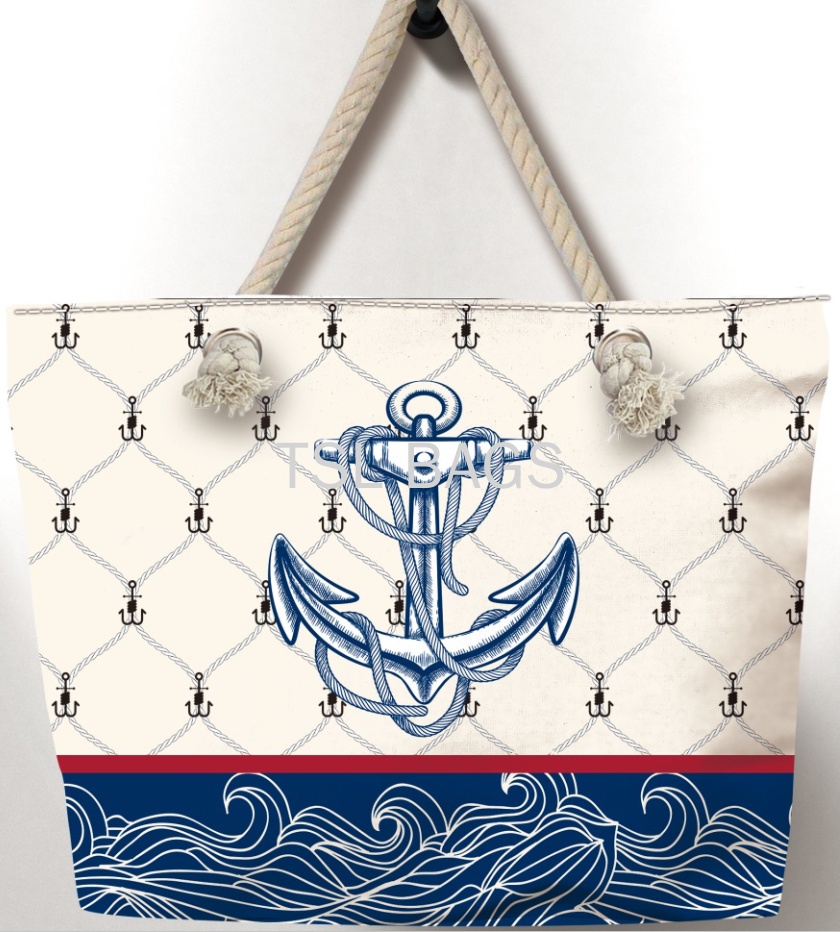 厂家直销 新款高清印花海洋系船锚沙滩包 麻绳包 轻便帆布包