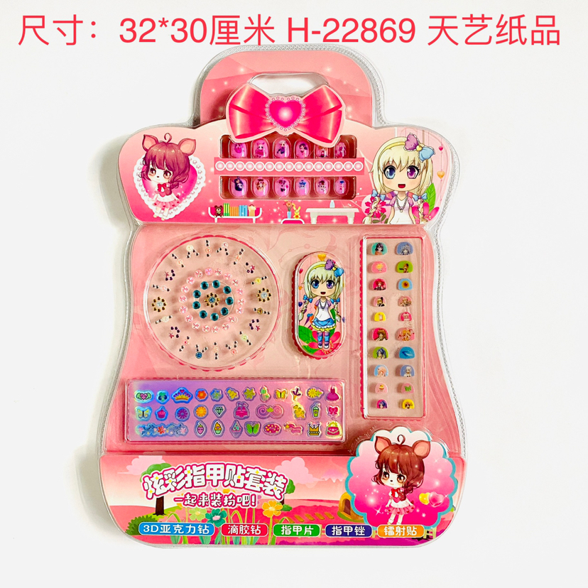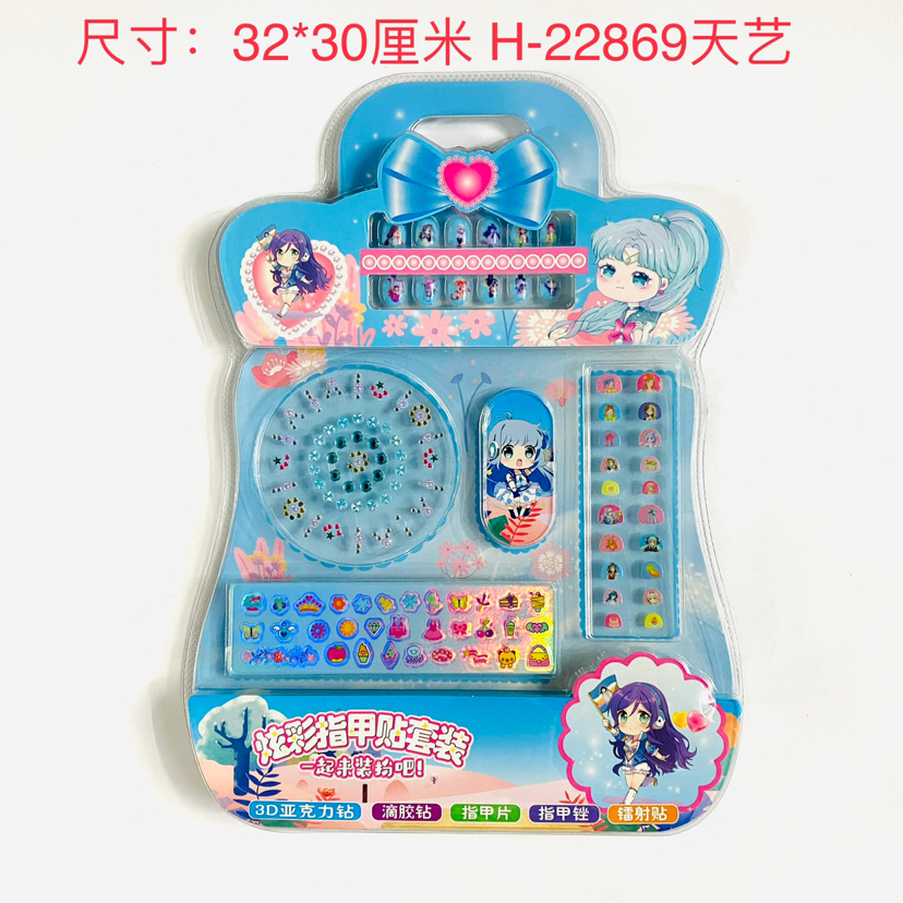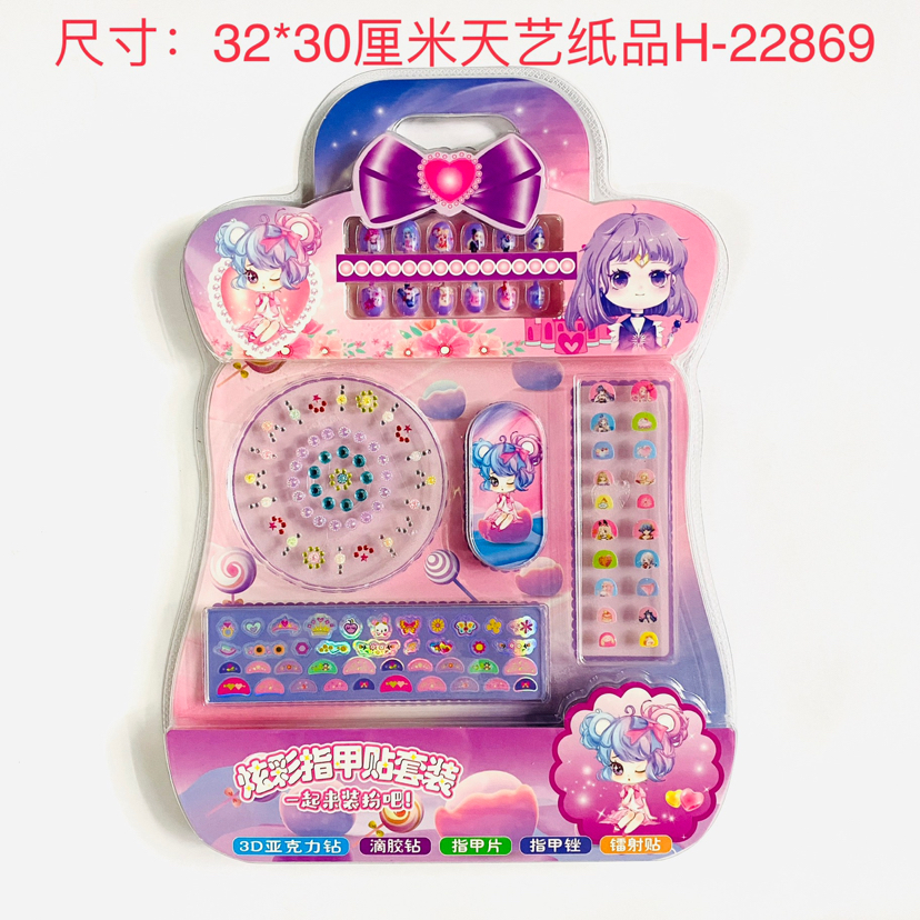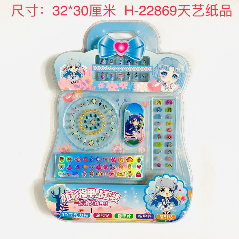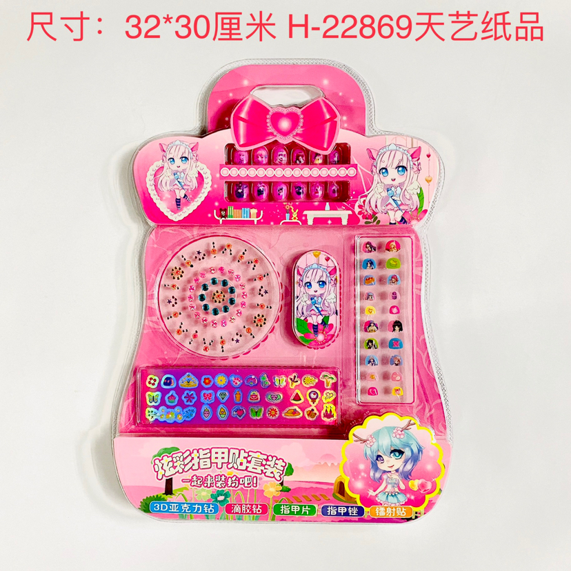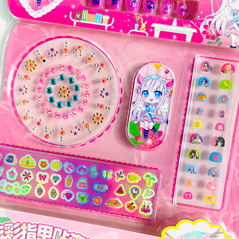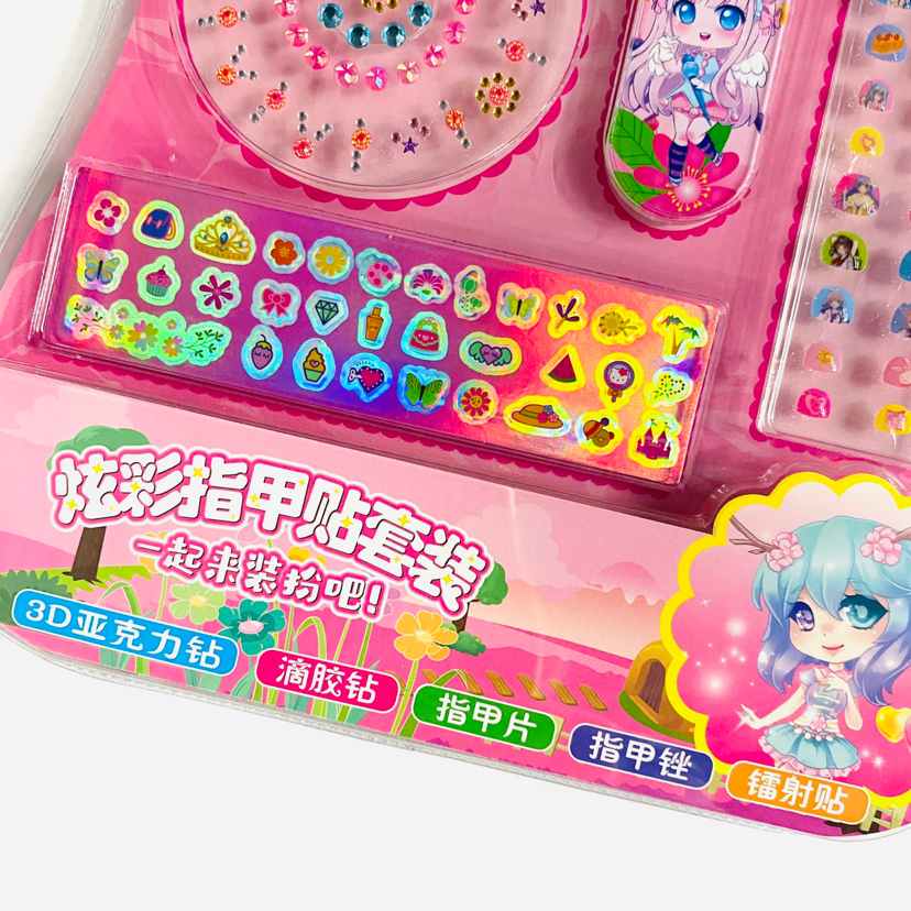 炫彩指甲贴套装/32*30厘米/内含亚克力钻、滴胶贴、指甲片、指甲锉、镭射贴/吸塑精美纸卡包装/252个每箱/