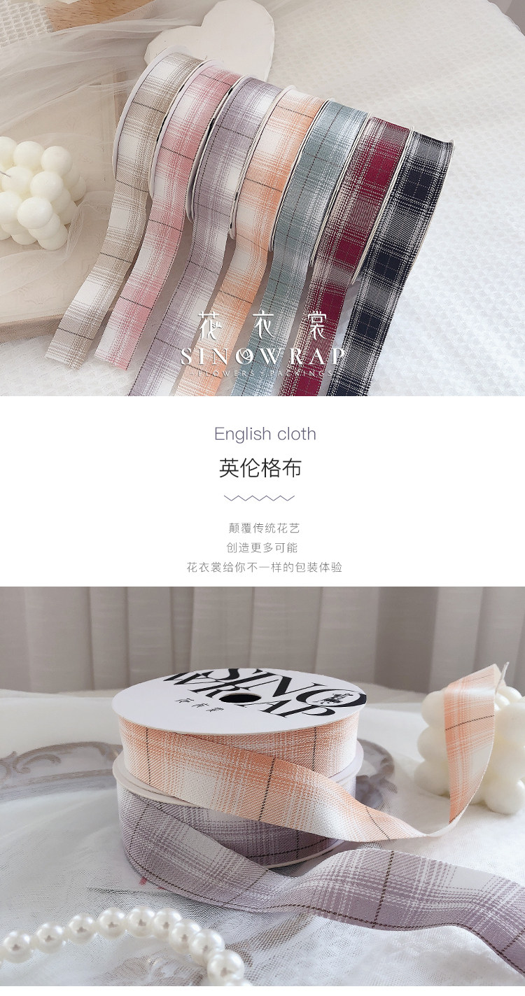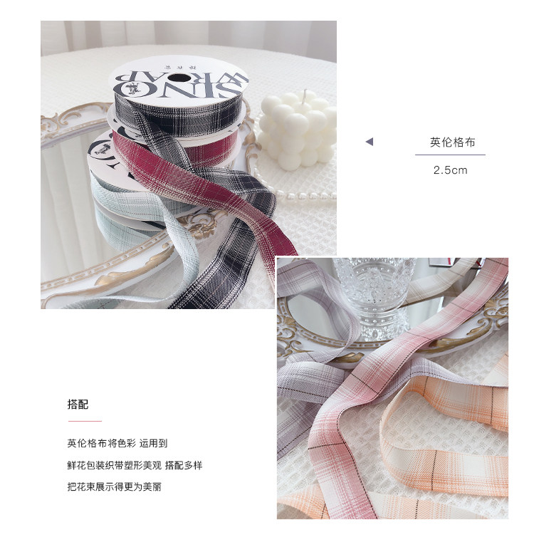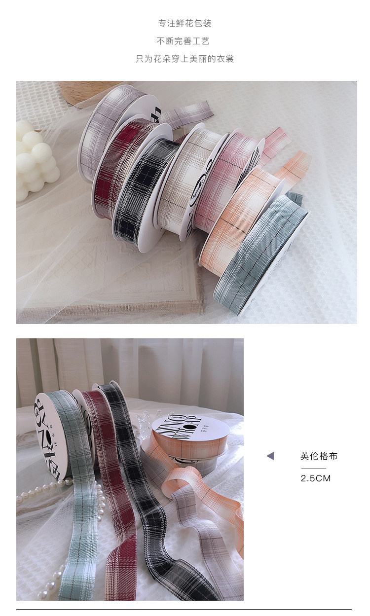 花衣裳 七夕新款2.5英伦格布艺缎带 格子网红缎带鲜花礼品包装