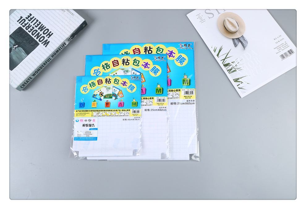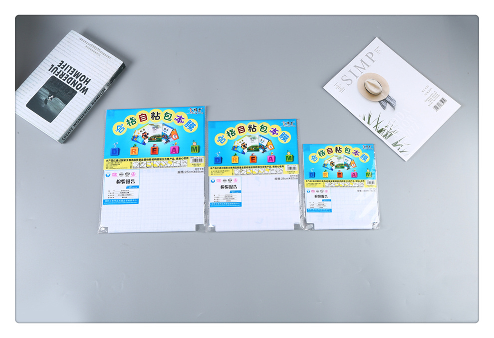 产品名称:超市售卖各式大小规格合格自粘式包书本保护膜中小学生课本包书膜 产品尺寸:多款可选 产品材质:具体请咨询客服 产品款式:如图(多款可选) 产品特点:防水防污、无需裁剪