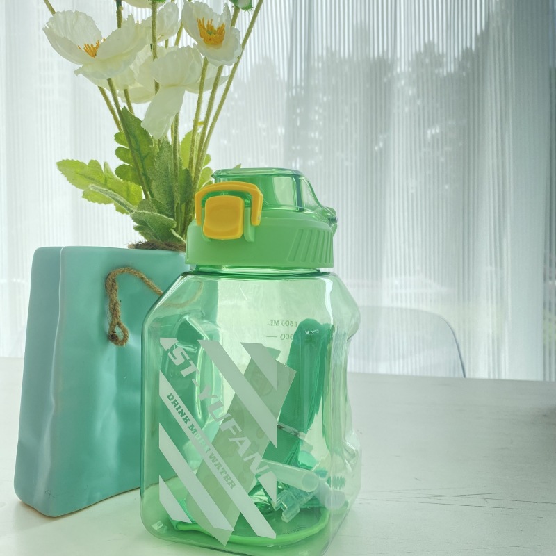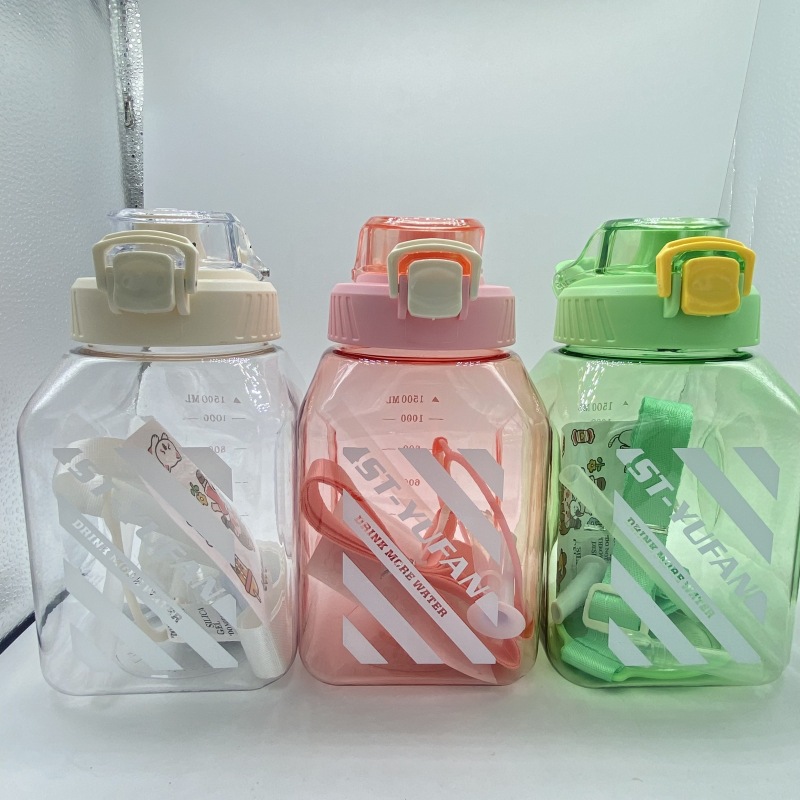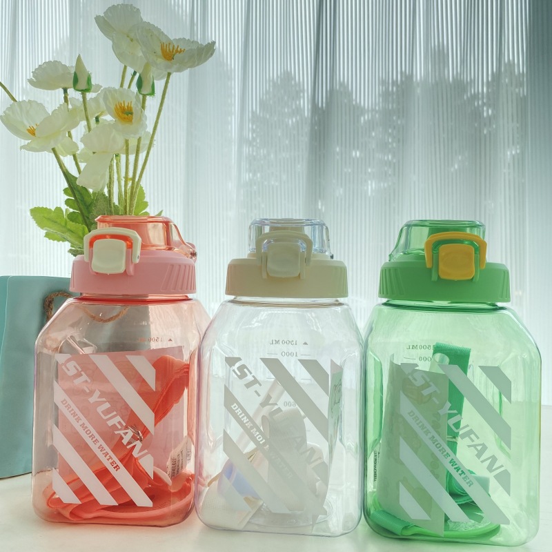 网红方形塑料大肚杯糖罐子大容量水壶夏季背带学生成人吸管水杯子 投诉