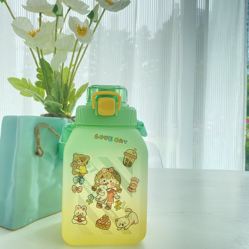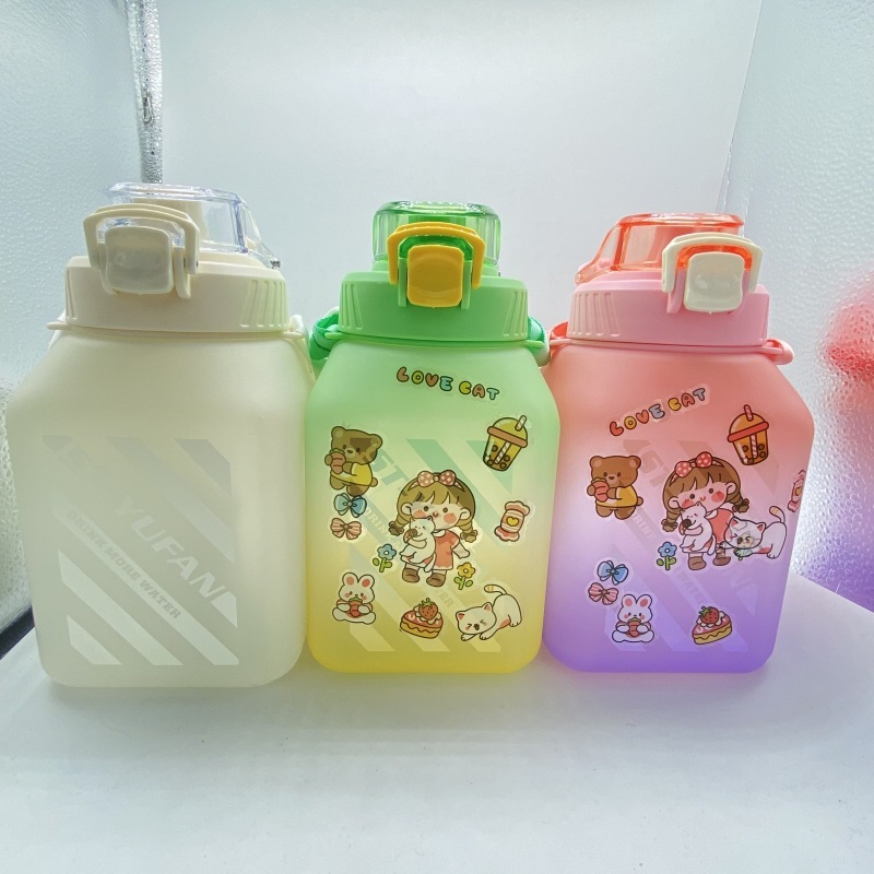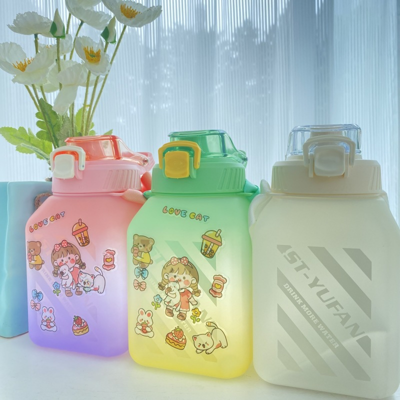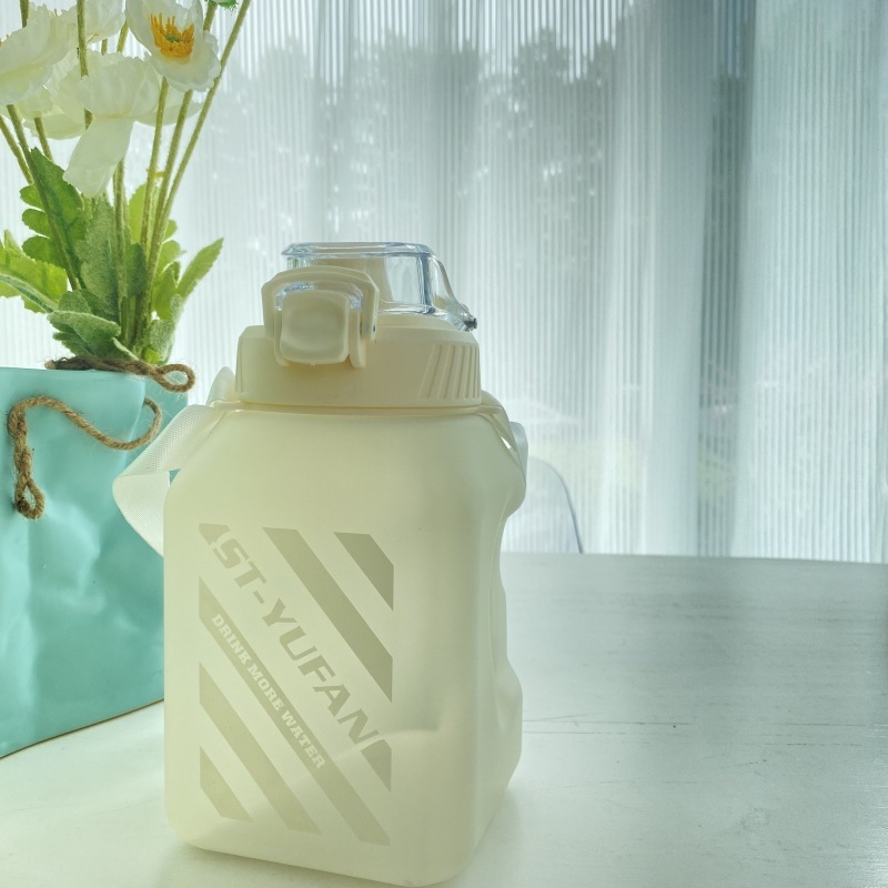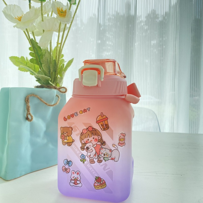 网红方形塑料大肚杯糖罐子大容量水壶夏季背带学生成人吸管水杯子