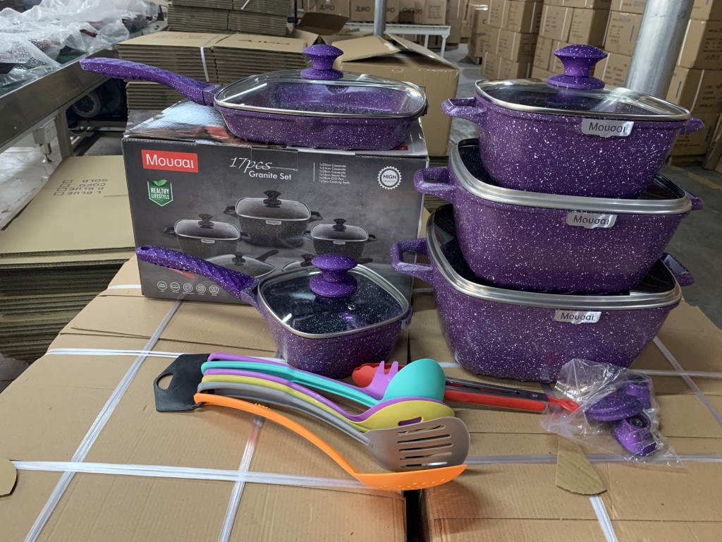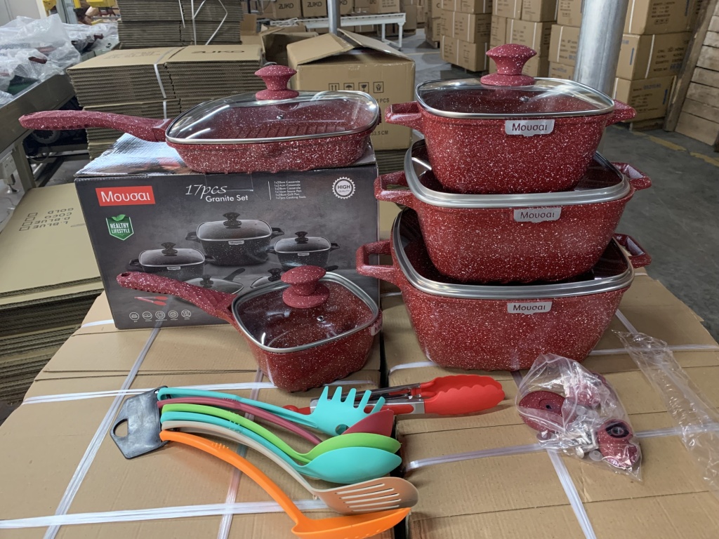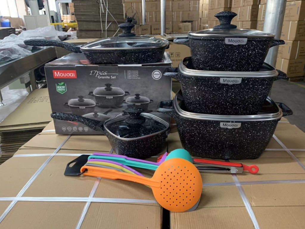 17pcs方形大理石套锅方形不粘锅