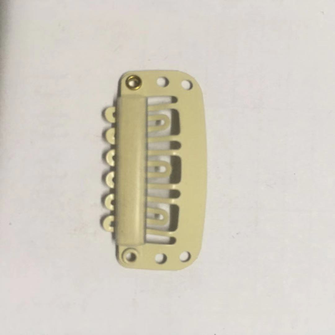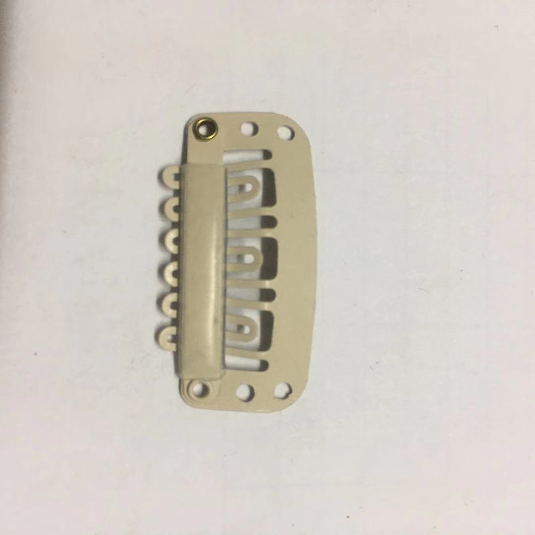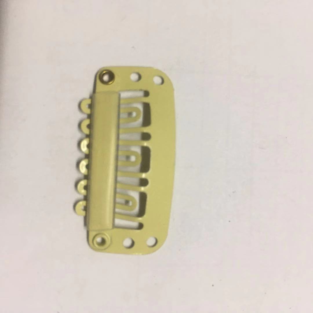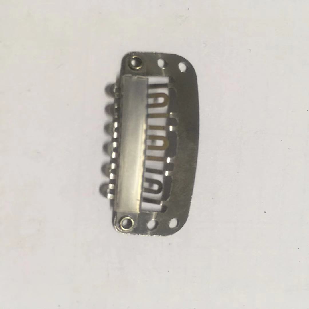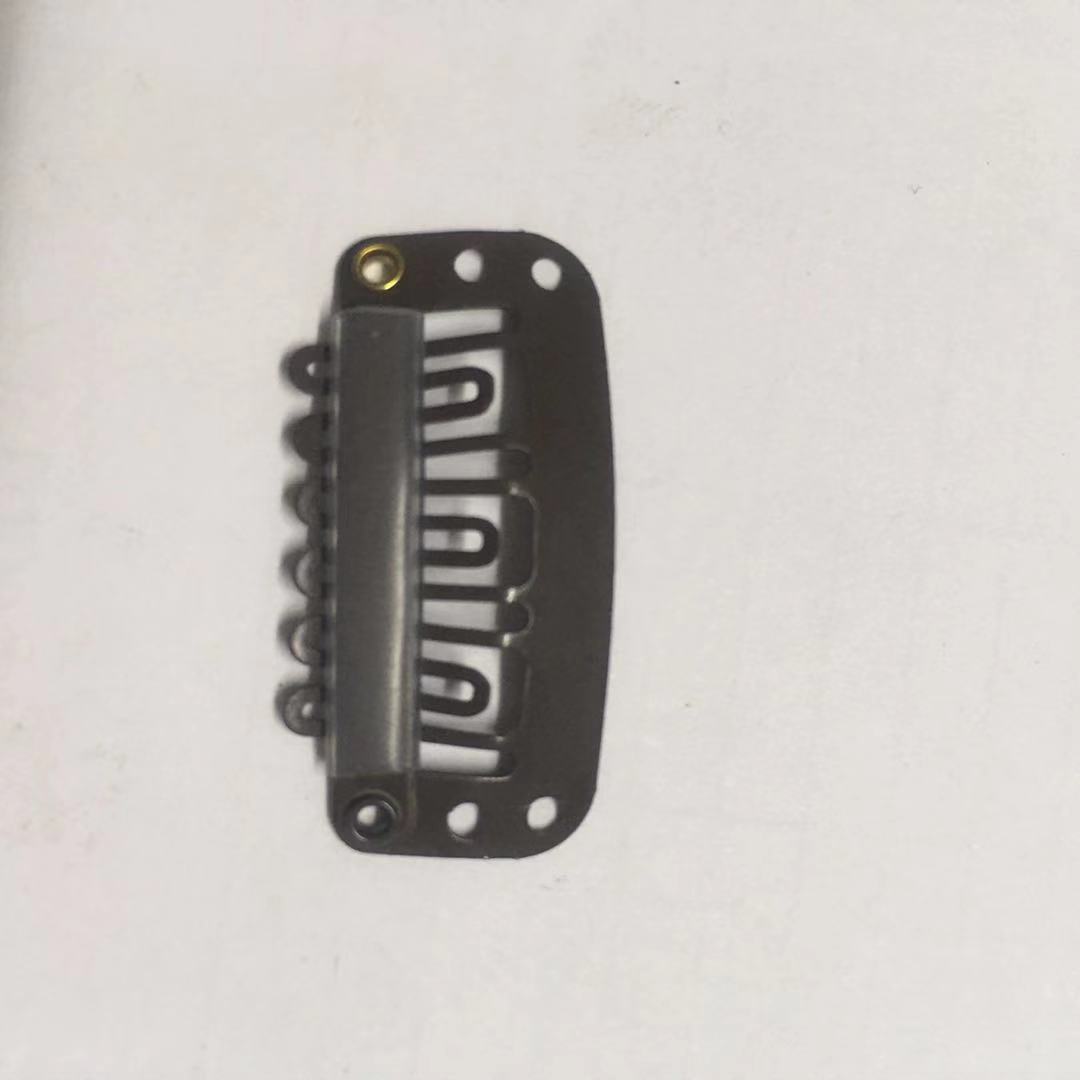 我厂主营生产假发卡子,接发卡子,假发辅料,采用国产普通钢材料和韩国进口不锈钢材料生产,可根据客人要求的工艺进行处理表面处理,既能保证产品的刚性,也能保证产品的韧性,质量保证,交期准时.规格有2.3cm6齿,2.3cm7齿,2.8cm6齿,2.8cm8齿,3.2cm6齿,3.2cm9齿,3.8cm10齿.是诸多假发厂家的首选合作厂家,欢迎新老客户来电咨询.