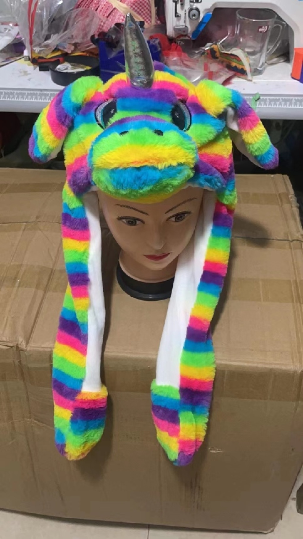 2024新款毛绒抖音爆款兔子帽独角兽网红玩具 投诉