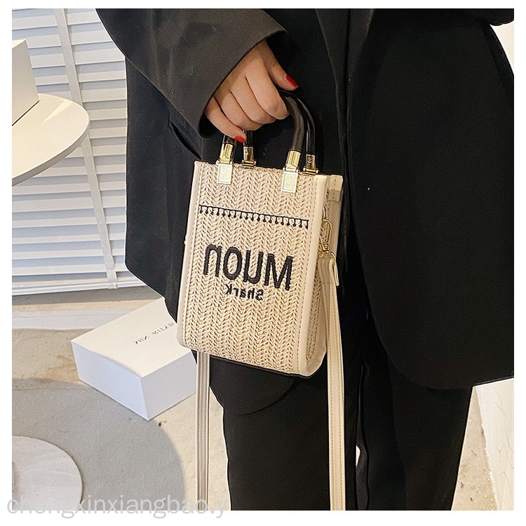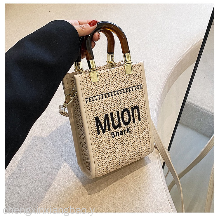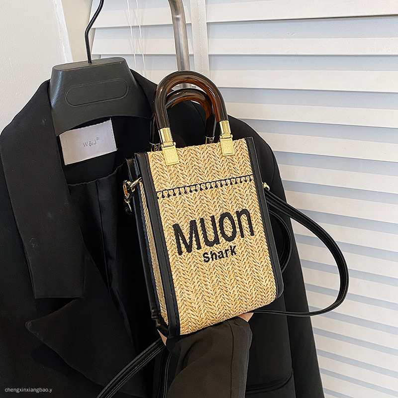 时尚亚克力手提竖款托特迷你包草编女包新款单肩手提包包斜挎潮流 English | 投诉