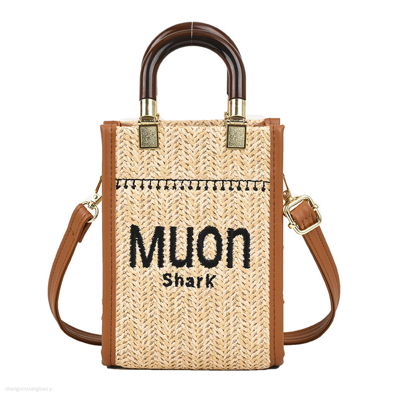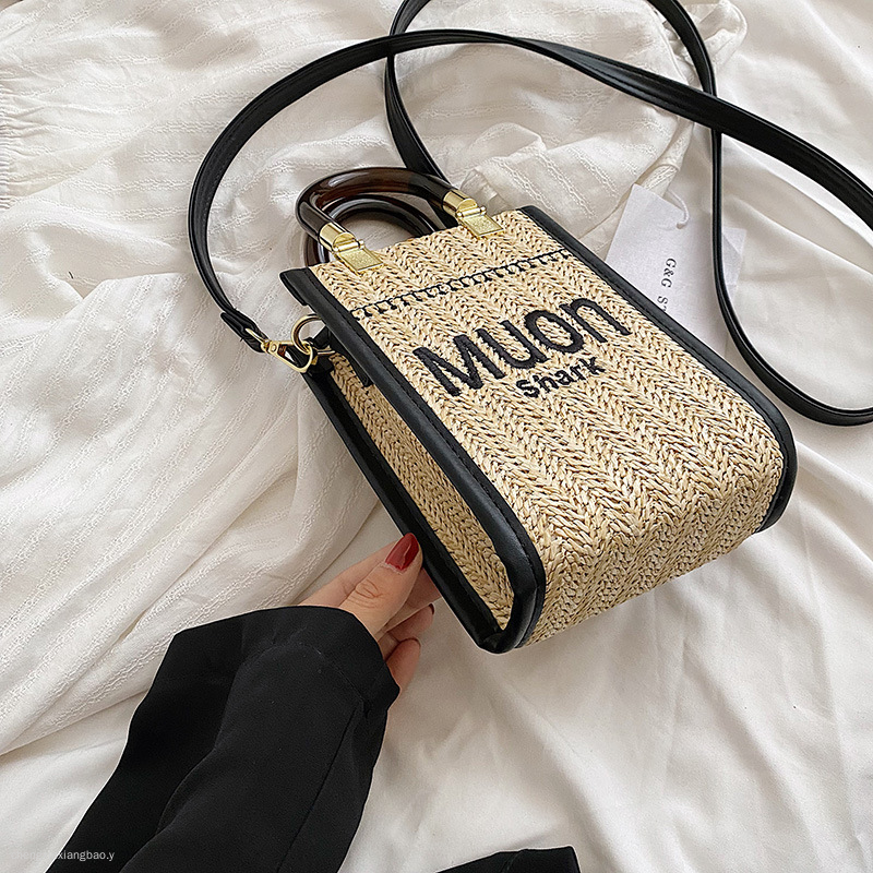 时尚亚克力手提竖款托特迷你包草编女包新款单肩手提包包斜挎潮流