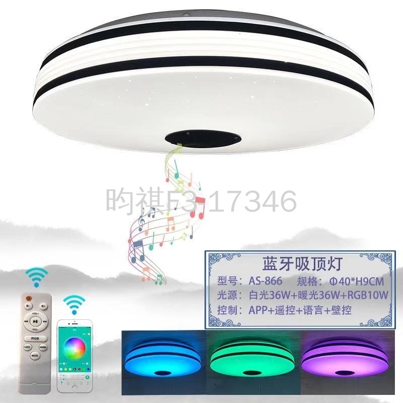 LED智能蓝牙音乐灯 60W遥控APP控制RGBW无极调光幻彩吸顶灯