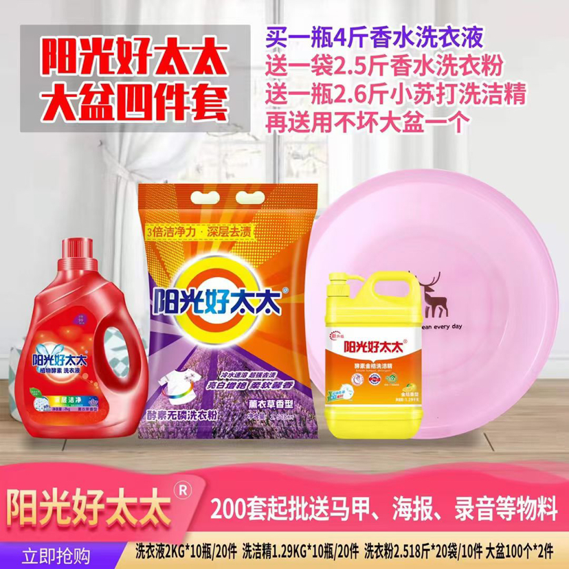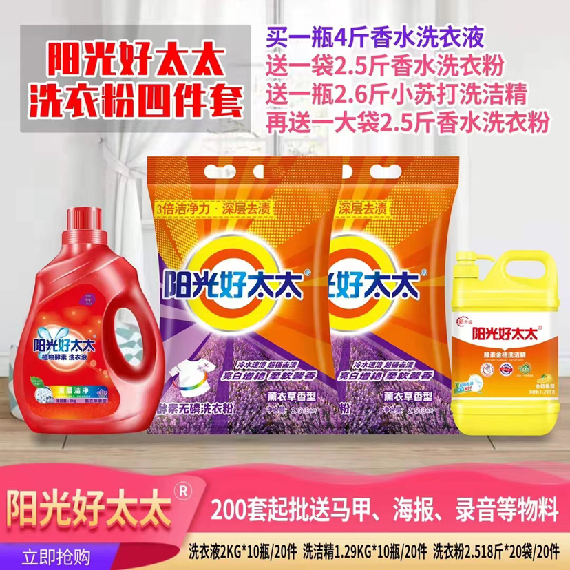 阳光好太太洗衣液四件套,120套起批,价格¥19,送配料一份。