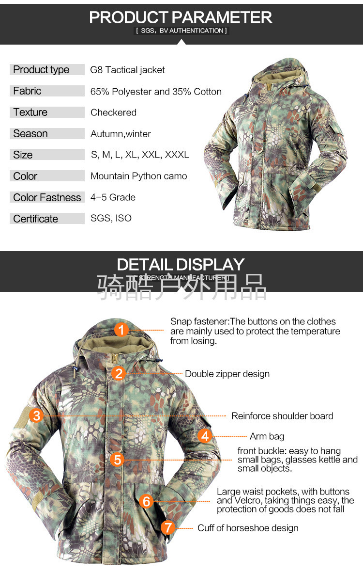 2021秋冬CS迷彩服 G8冲锋衣抓绒加厚战术连帽外套 投诉