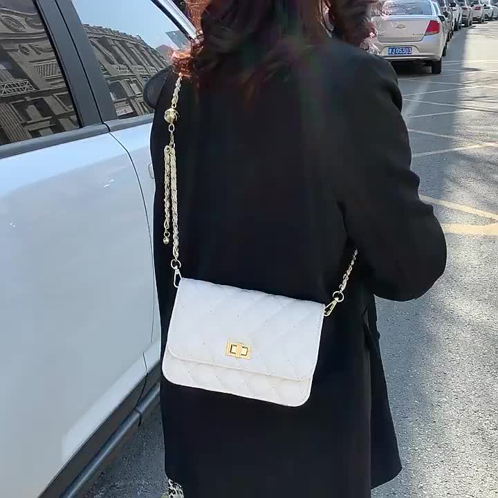 2022新款女士单肩包新潮质感百搭腋下包时尚菱格链条斜挎包批发
