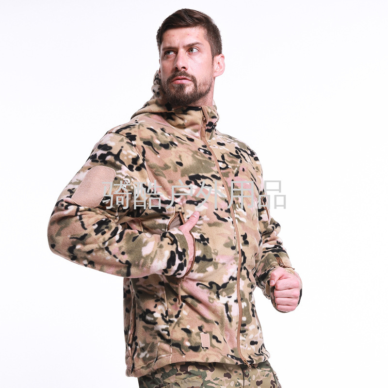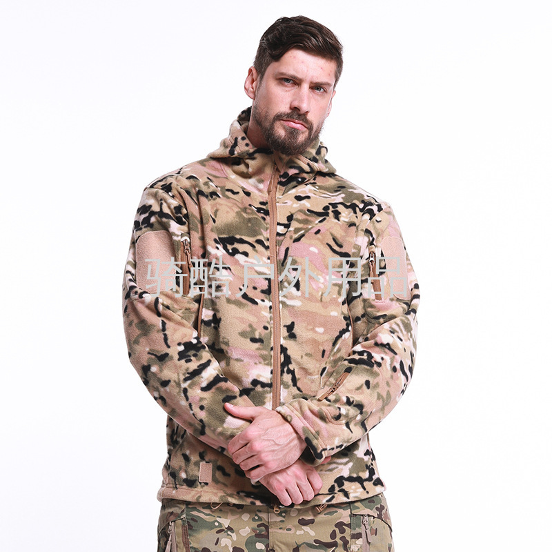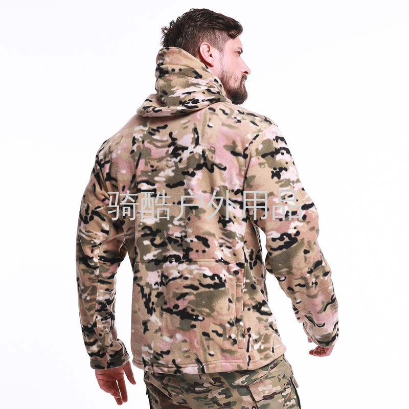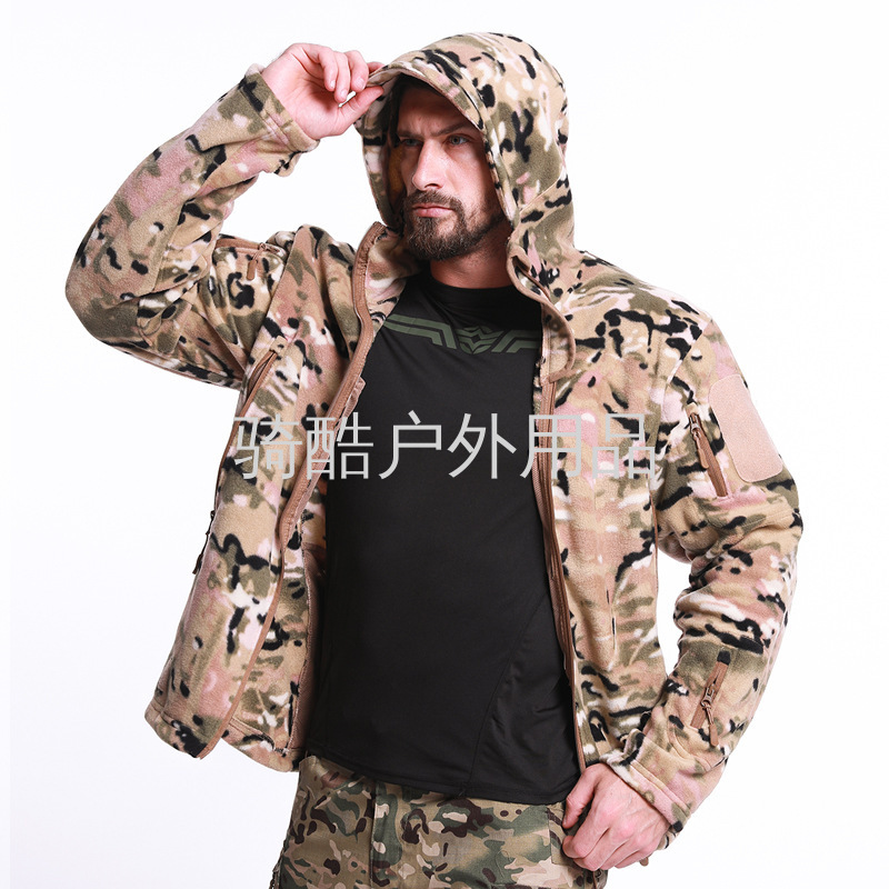 新款户外抓绒衣外套男防风保暖夹克修身加绒加厚冲锋衣内胆带帽